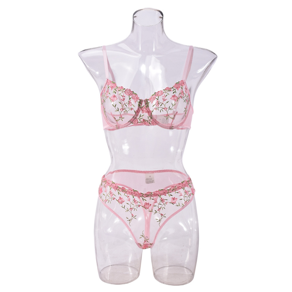 Lingerie Sexy Bra Underwear Transparent Mesh Embroidered Floral Underwear Two Piece Set