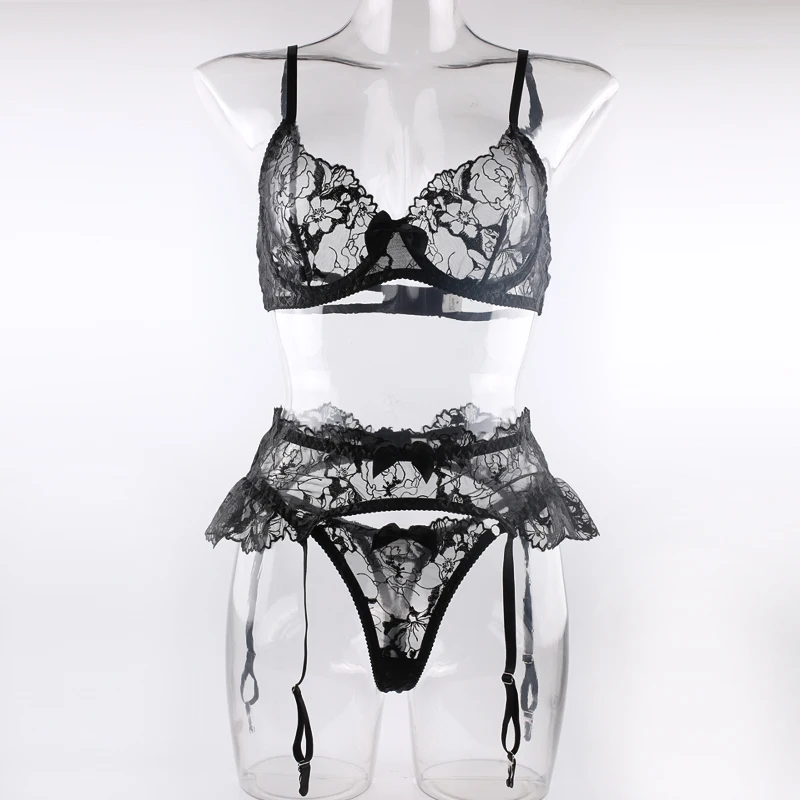 Lingerie y Delicate Underwear Embroidery Lace For Linen See Through Bra And Panty Set Intimate For Full
