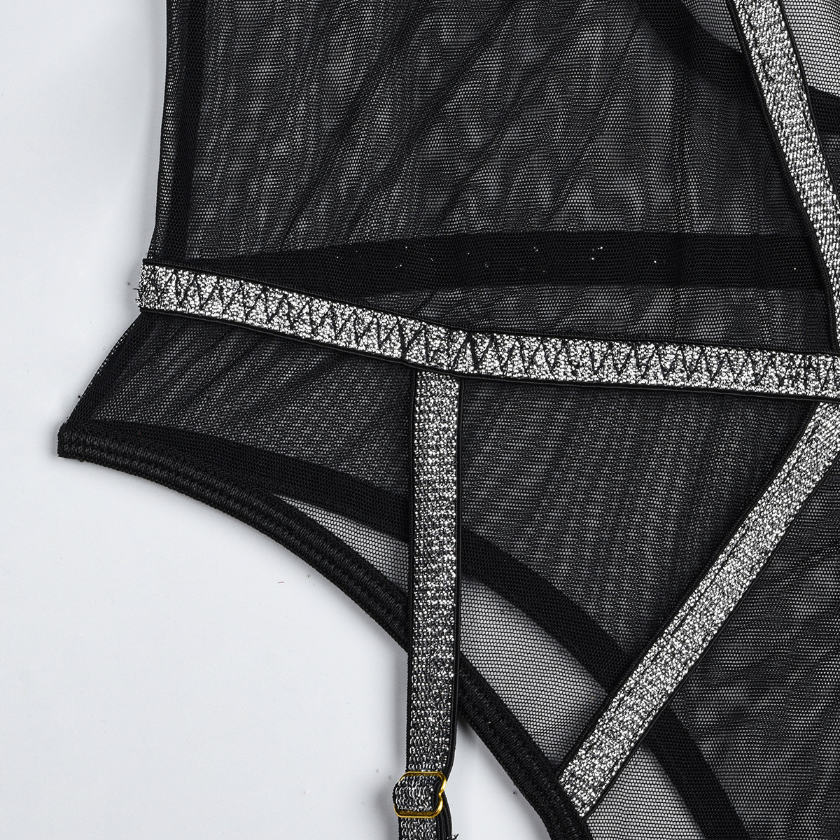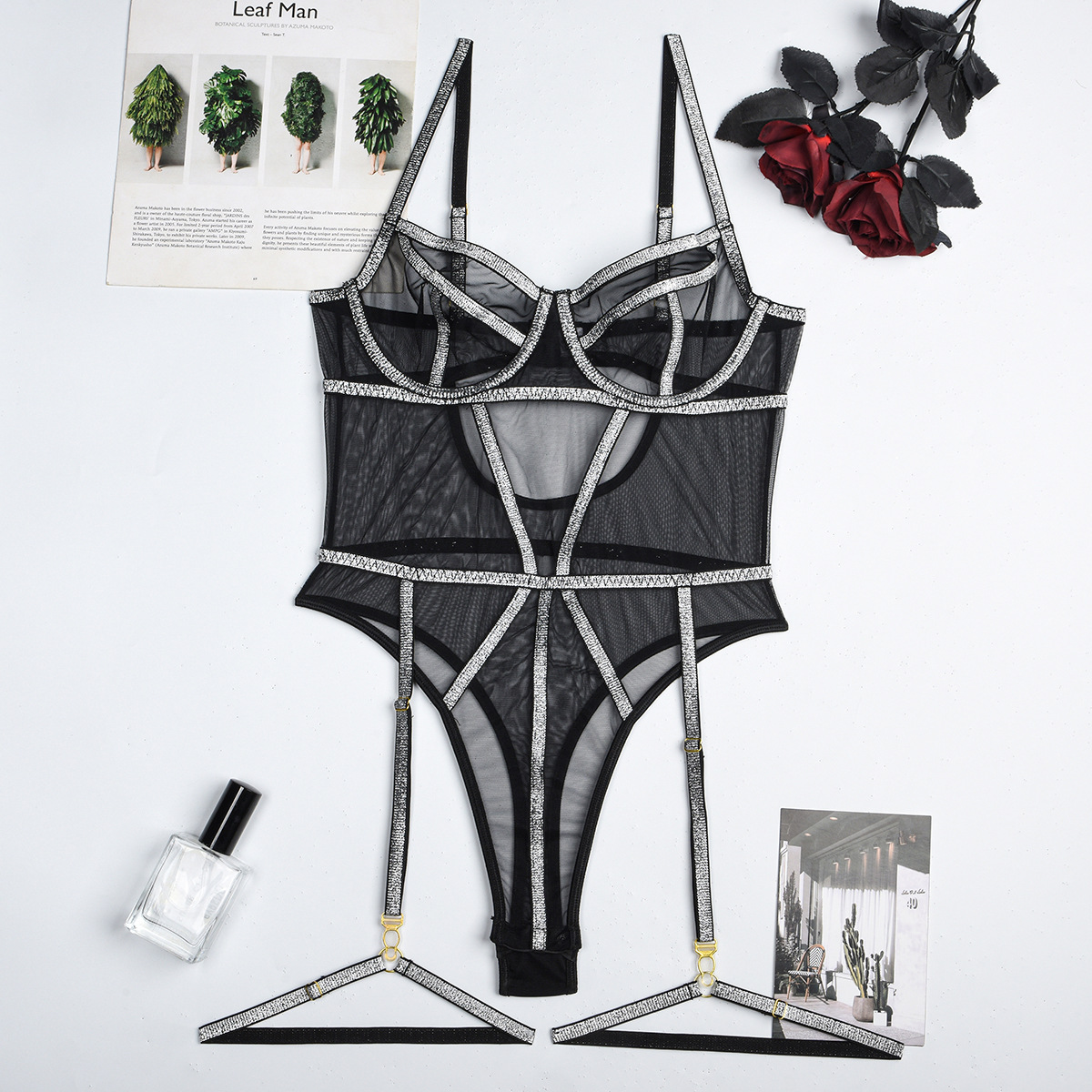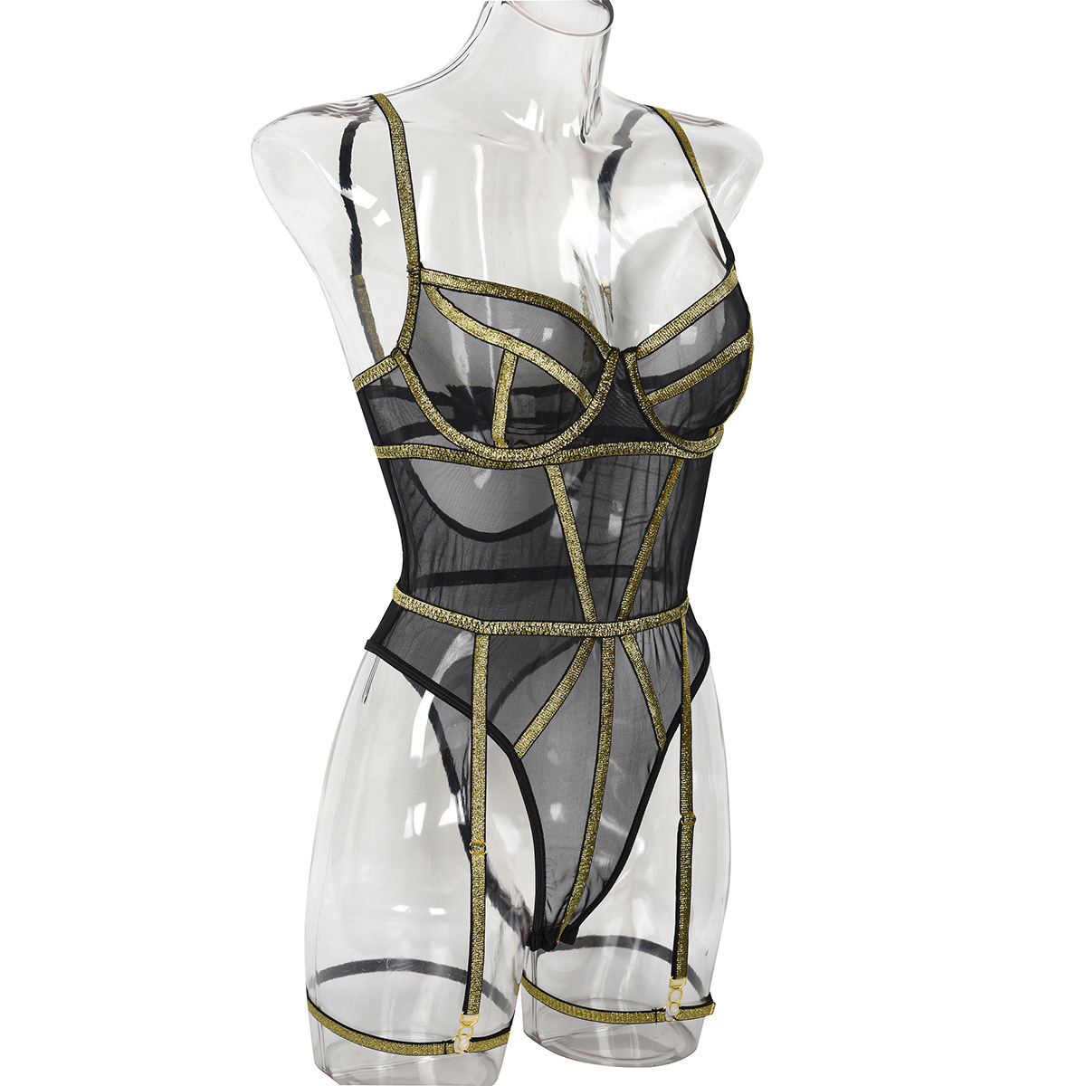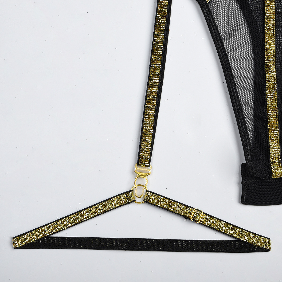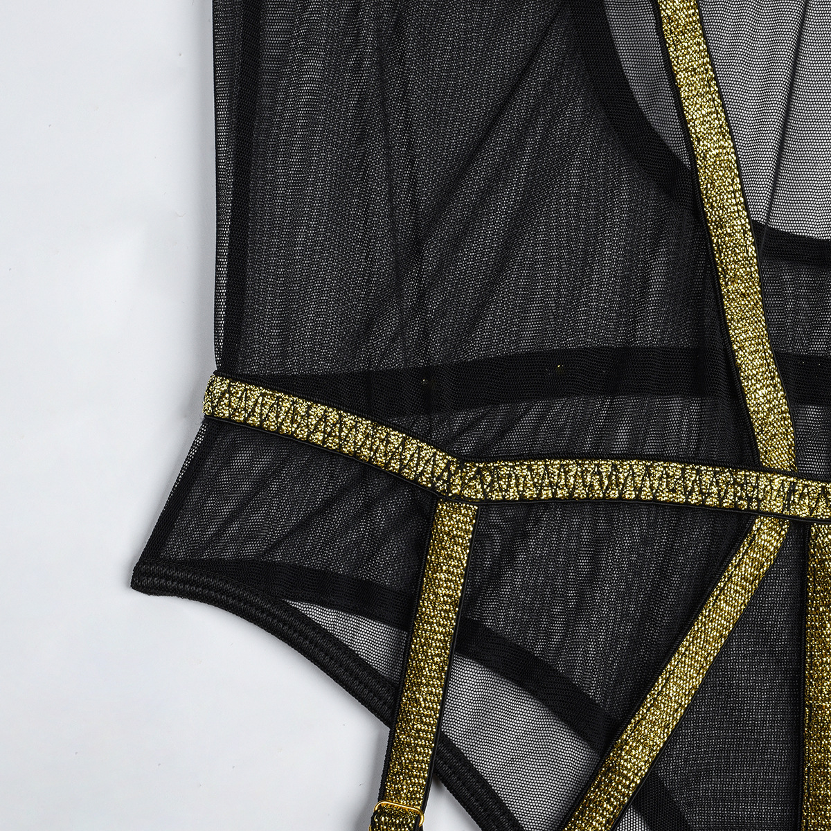 Lingerie Sexy Underwear Jumpsuit Gold Silk Beautiful Line Mesh Stitching Girl Camisole