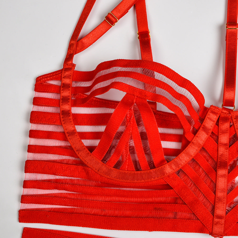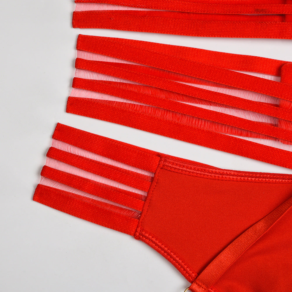 Lingerie Suit Black Webbing Stitching Halter Neck Nightclub Suit