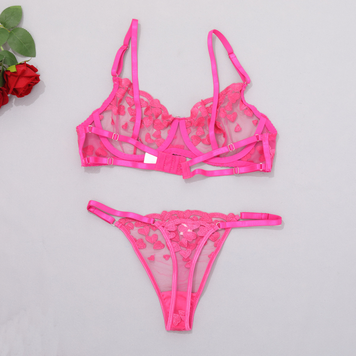 Love Embroidery Stitching Strap Sexy Lingerie Sexy Lingerie Set