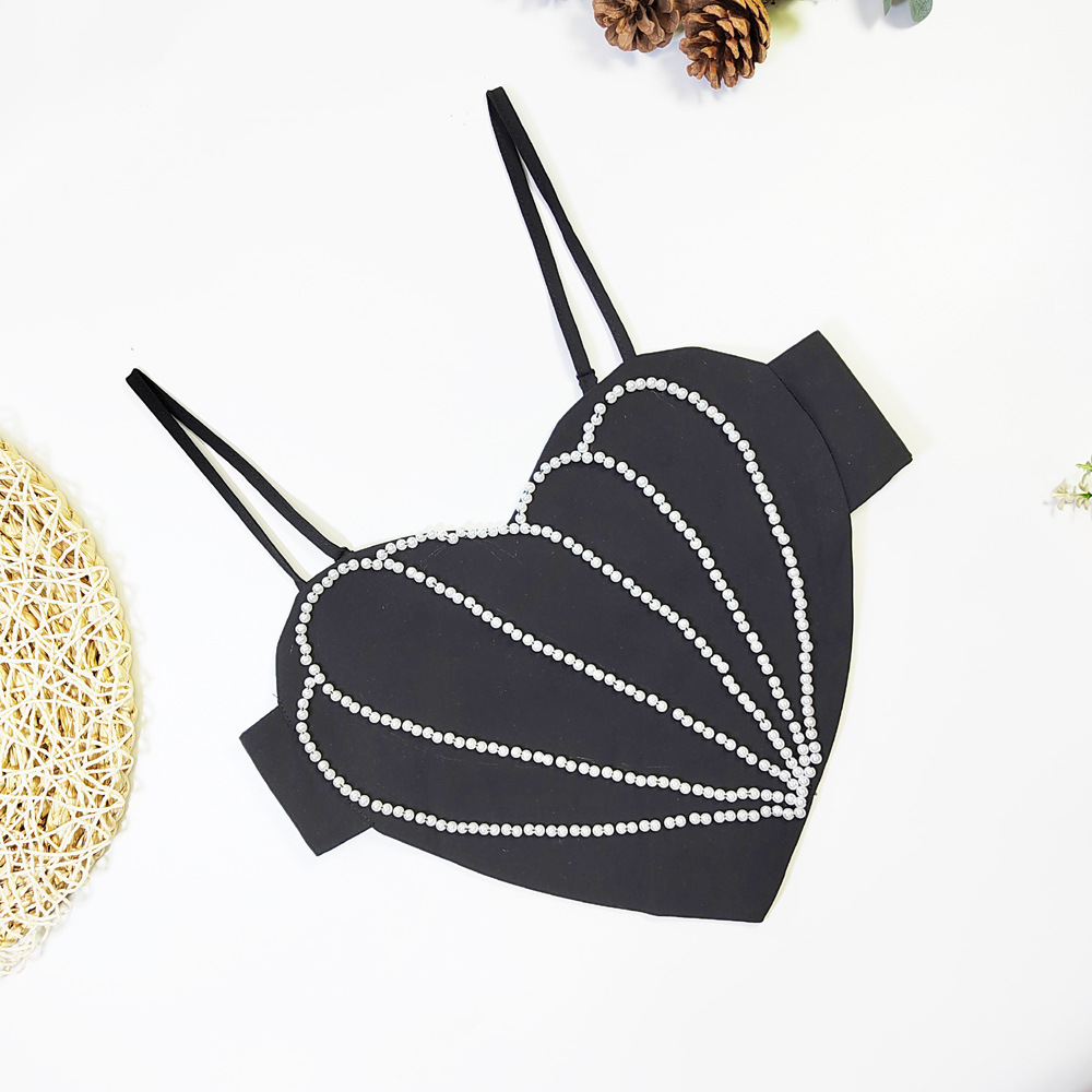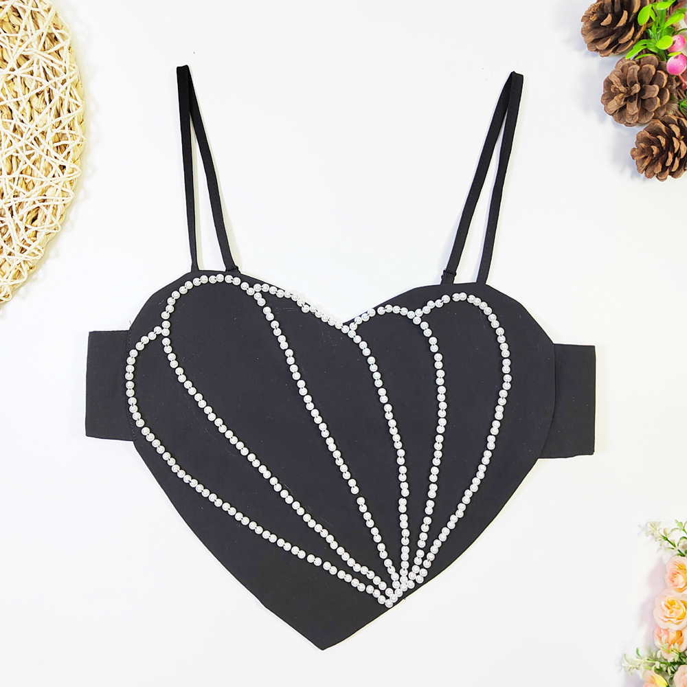 Love Heart Bib Type Pearl Suspender Inner Wear Outer Wear Bare Back Tube Top Sweet Cute Nightclub Heart Shaped Sexy Lingerie