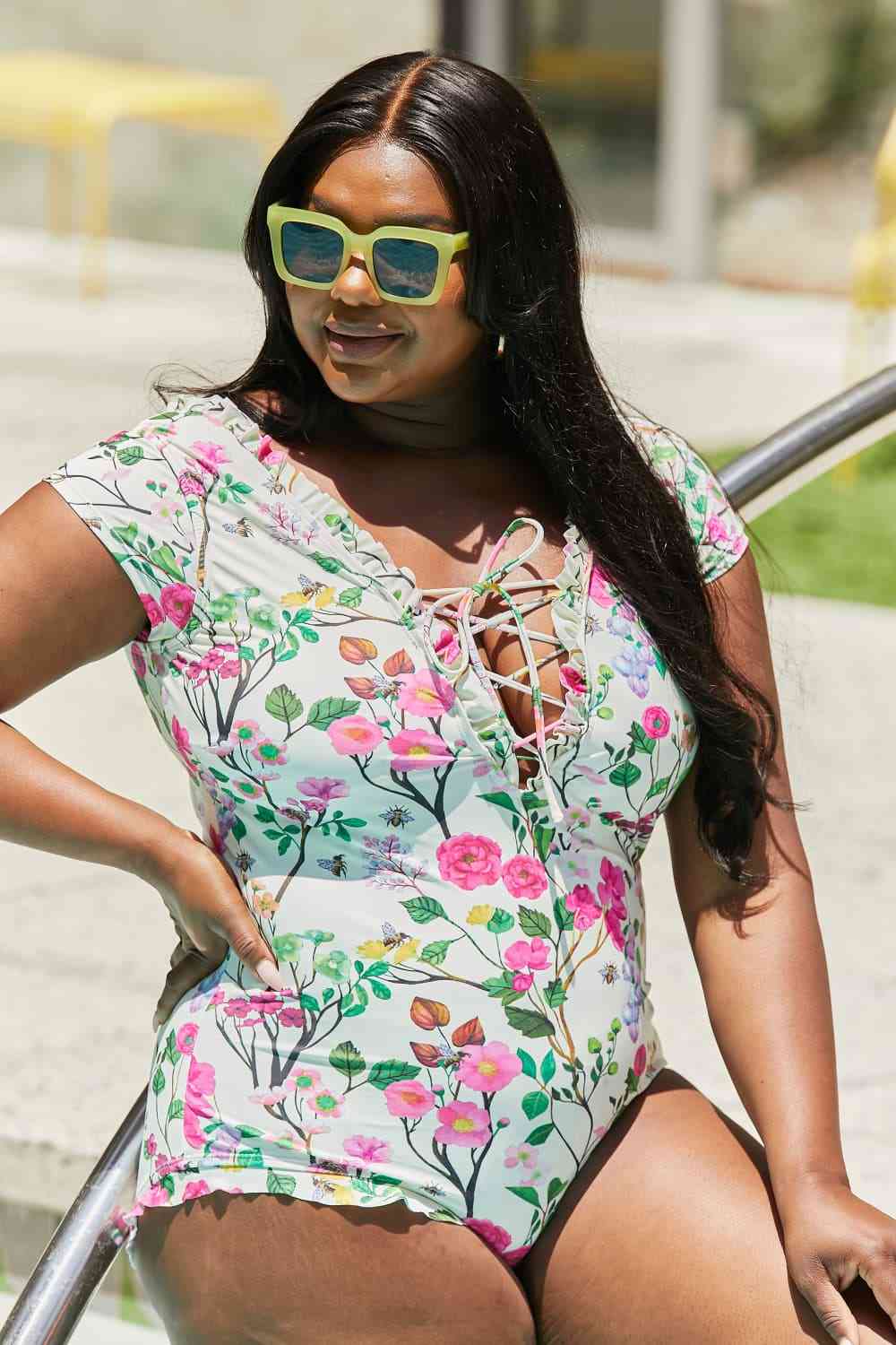Marina West Swim Bring Me Flowers V-Neck One Piece Swimsuit Cherry Blossom Cream