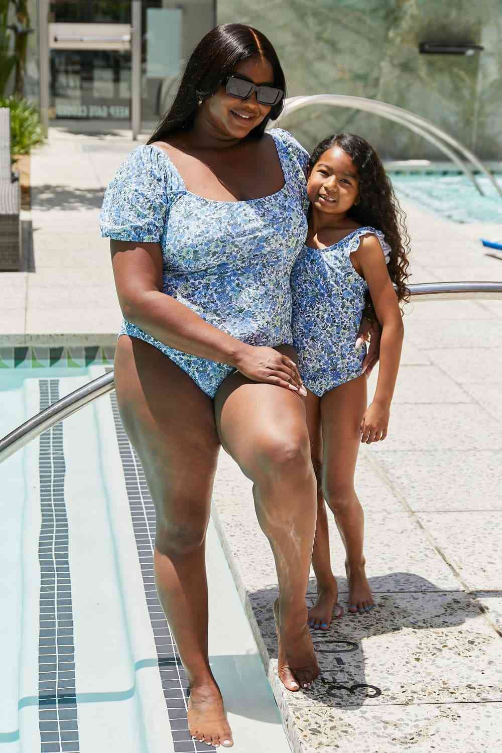 Marina West Swim Salty Air Puff Sleeve One-Piece in Blue