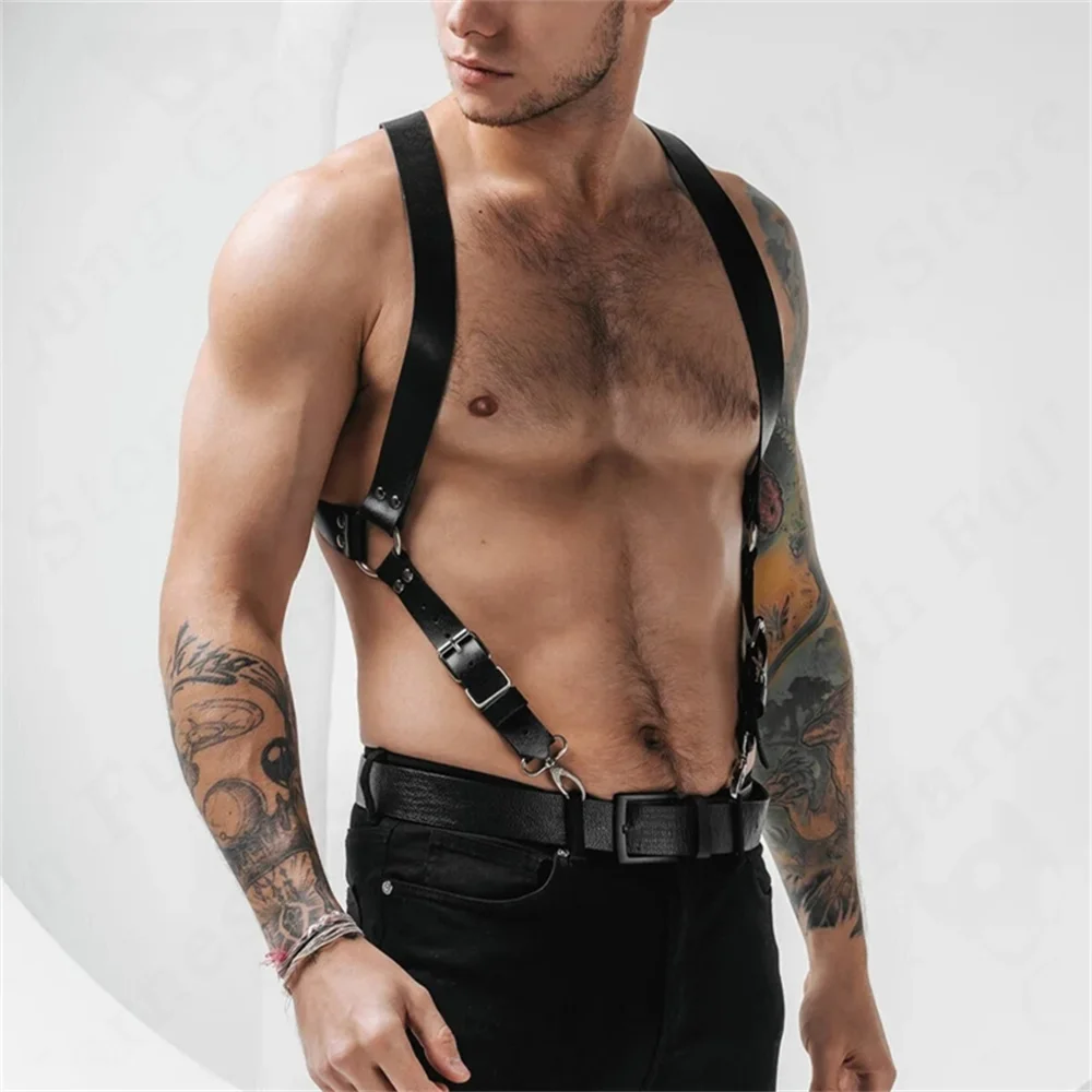 Men Harness Belts Clothing for Rave ual PULeather Chest Adjustable Body Cage Harness Lingerie