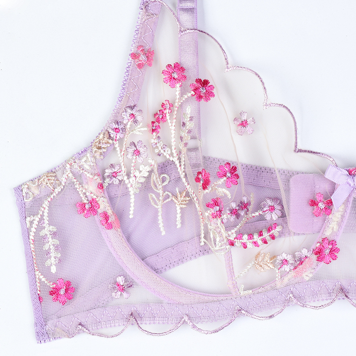 Mesh Thin Floral Embroidery Wave Lace See through Sexy Underwear Women