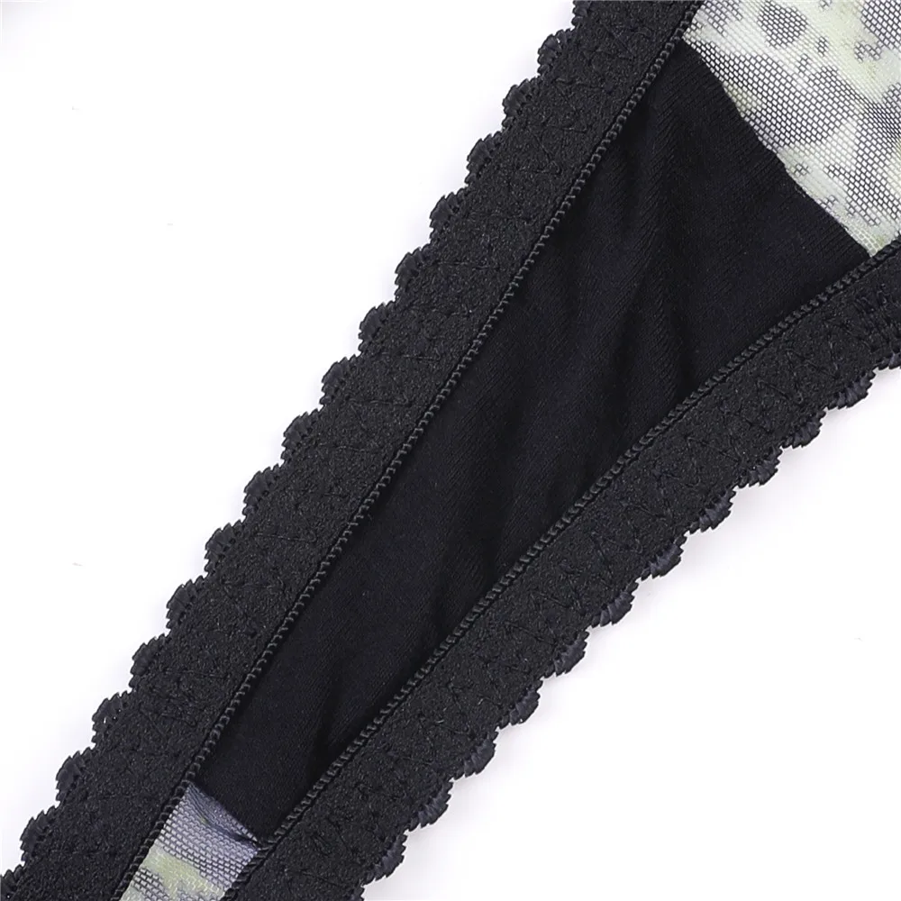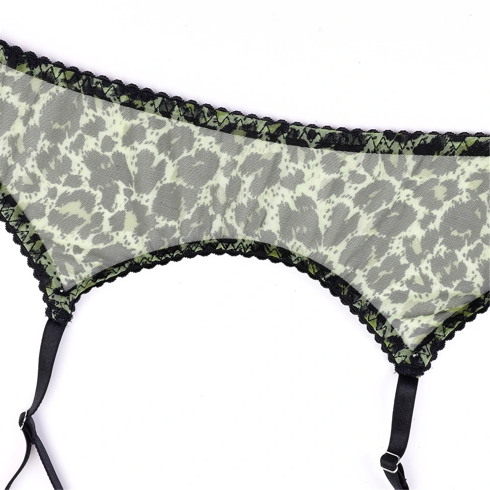 Neon Leopard Lingerie 5-Piece Lace Underwear Uncensored Seamless y Sensual Transparent Garter Sets