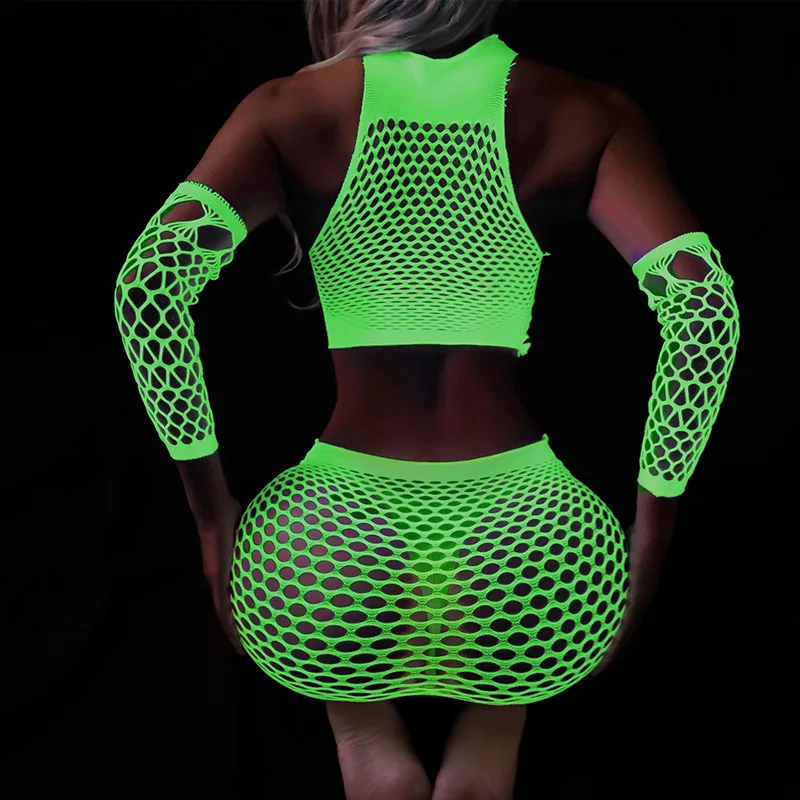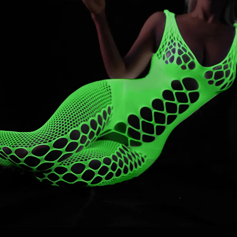 New Luminous Crotchless Bodystocking For Mesh Babydoll Dress Transparent Lingerie Plus Size Curvy Bodysuit Costumes