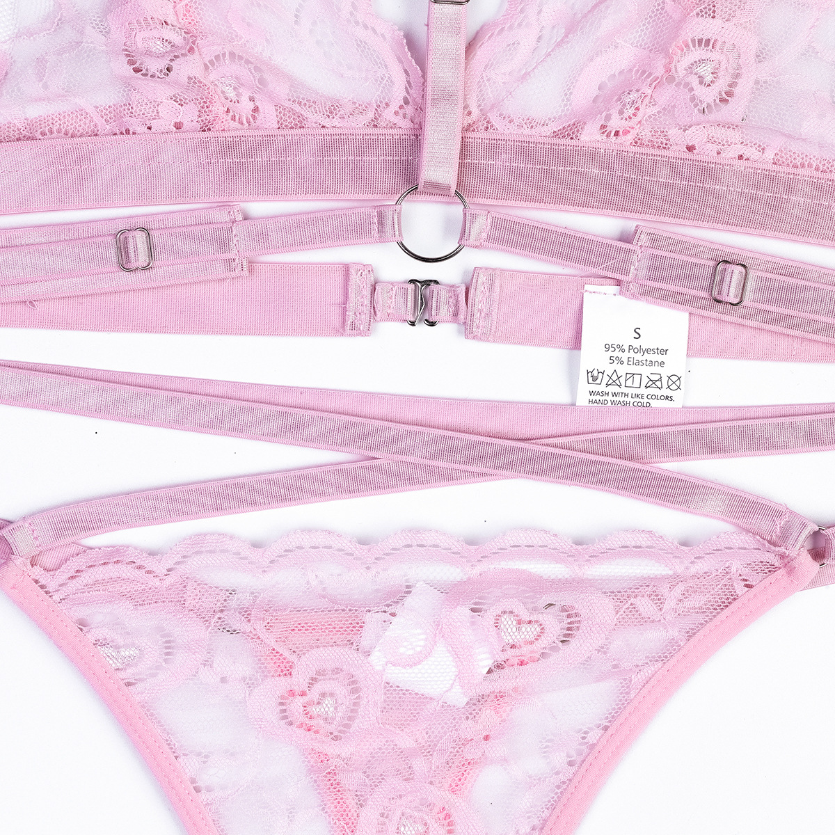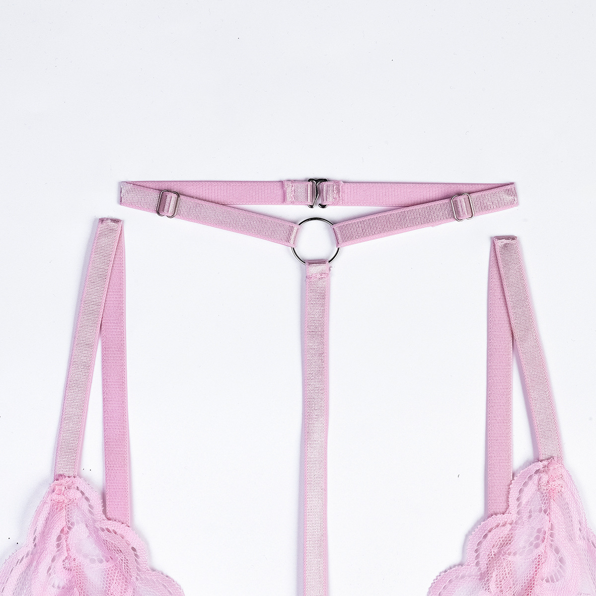 Pink Cute Girl Sexy Sexy French Lace Thin See through Halter Underwear