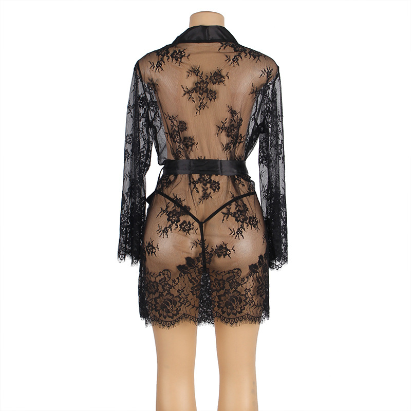 Plus Size Sexy Lingerie Lace Mesh See through Nightgown Sexy Pajamas