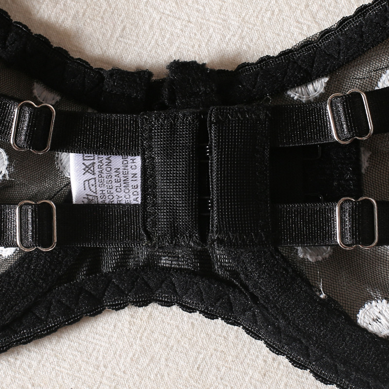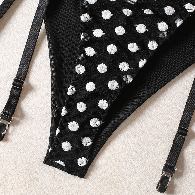 Polka Dot Lingerie Four-piece Set With Scarf Waist Bow Ultra-thin See-through Underwear