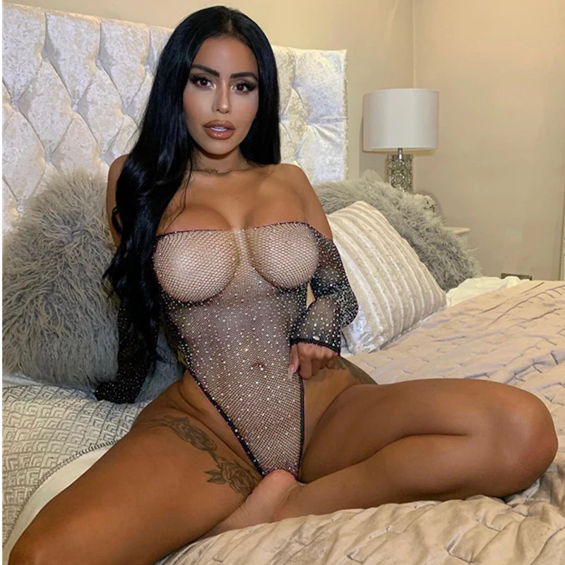 Exotic Apparel Women Lingerie Teddies Bodysuit Rhinestone Underwear Plus Size Babydoll Open Crotch Costumes