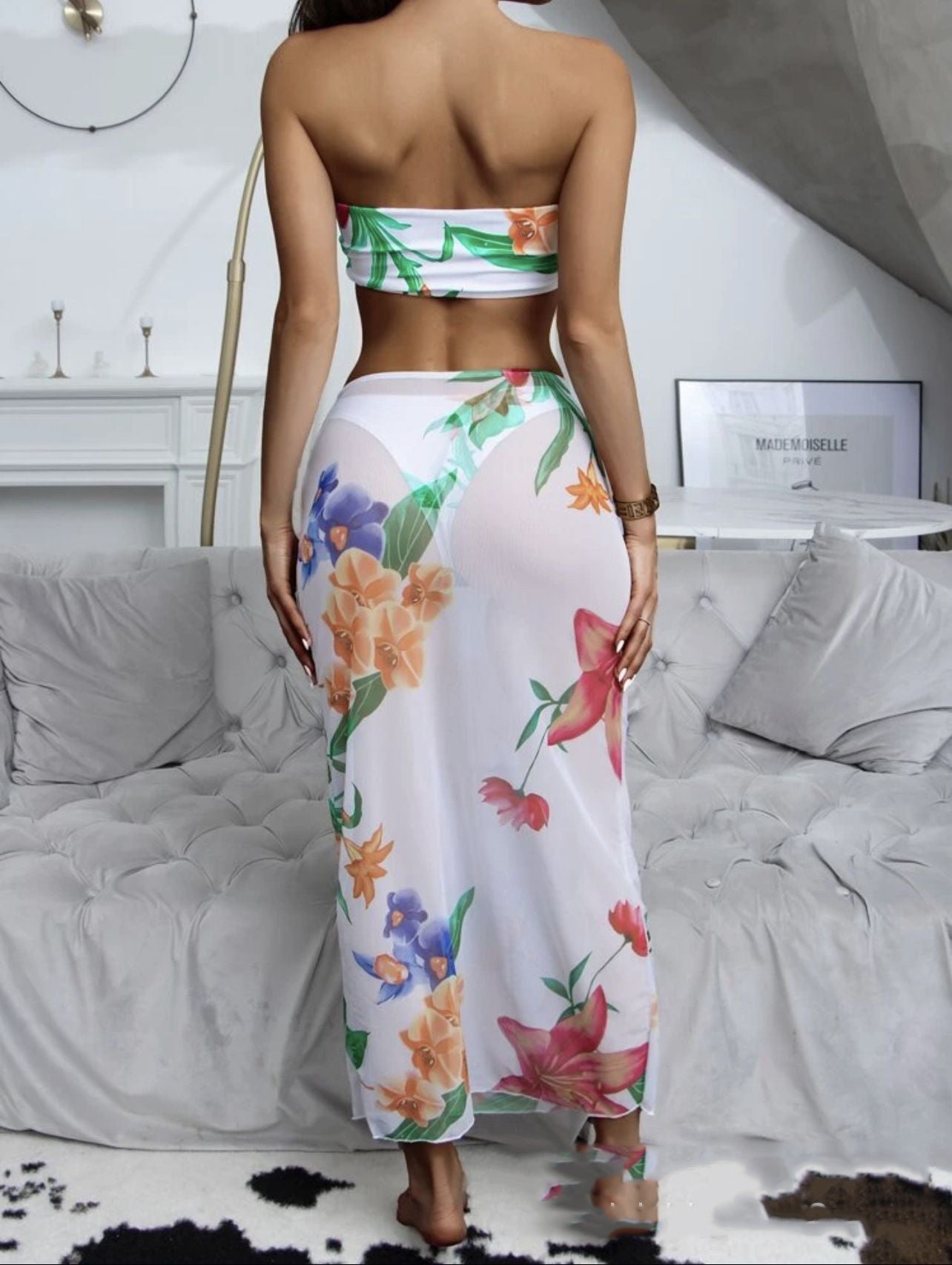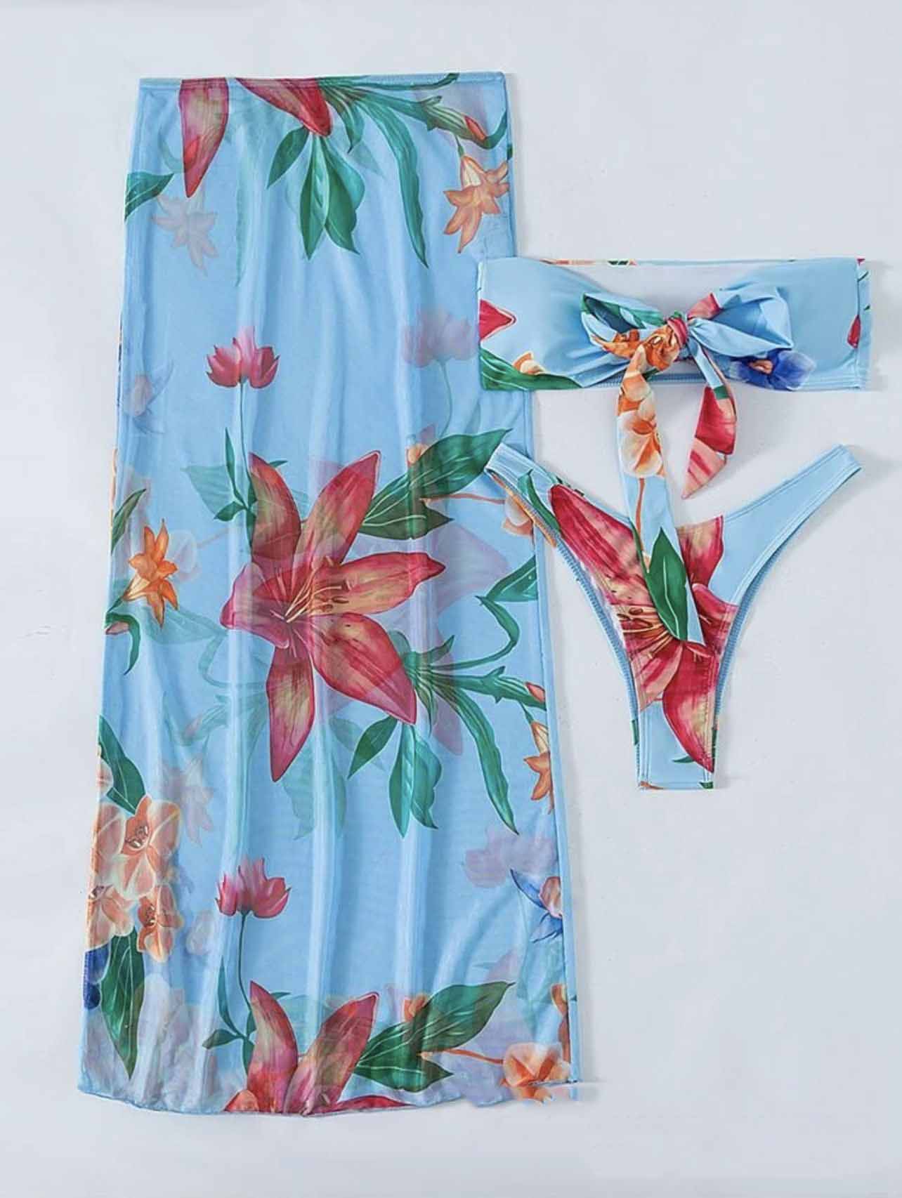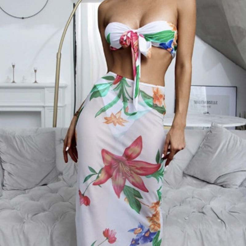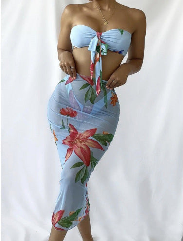 Printed Bikini Sexy Swimsuit Women's Three-piece Set Tulle Skirt