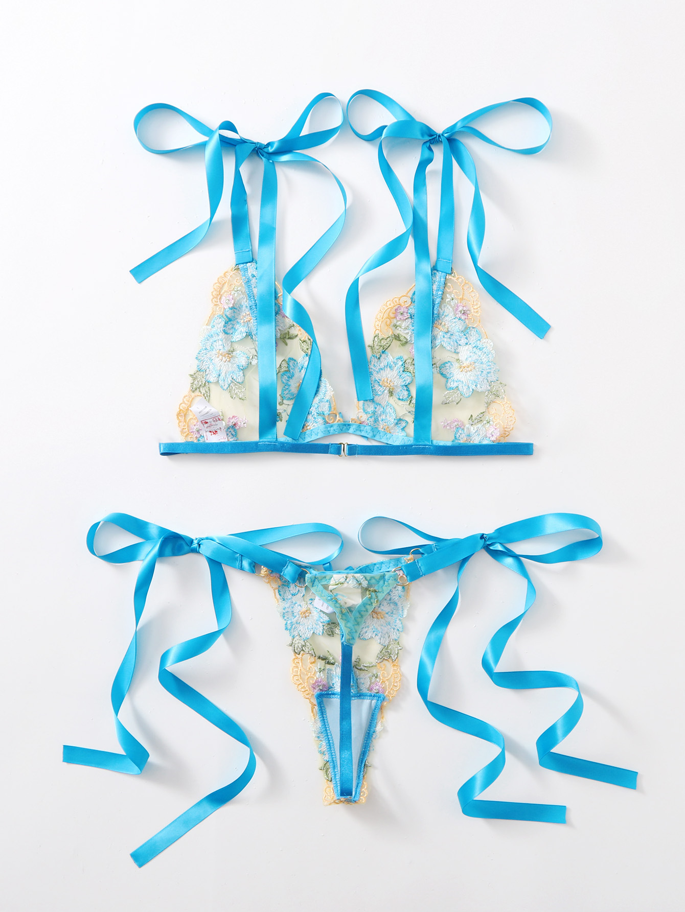 Printed Pattern Bikini Blue Bow Sexy Lingerie Tie Strap