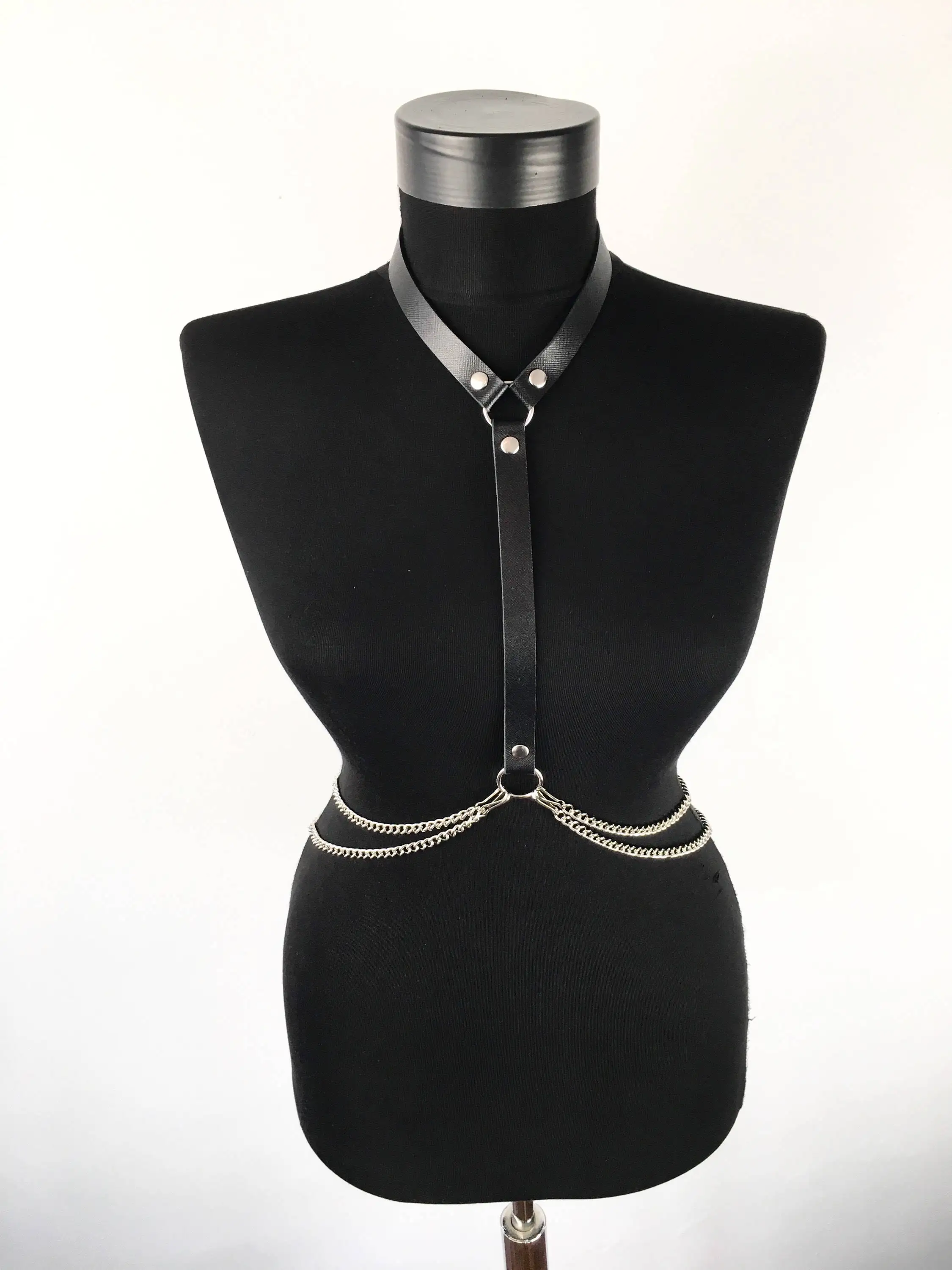Pu Leather Fashion Chain Harness Belt Chest Harness Corset Lingerie Punk Gothic Lingerie Women Clothing