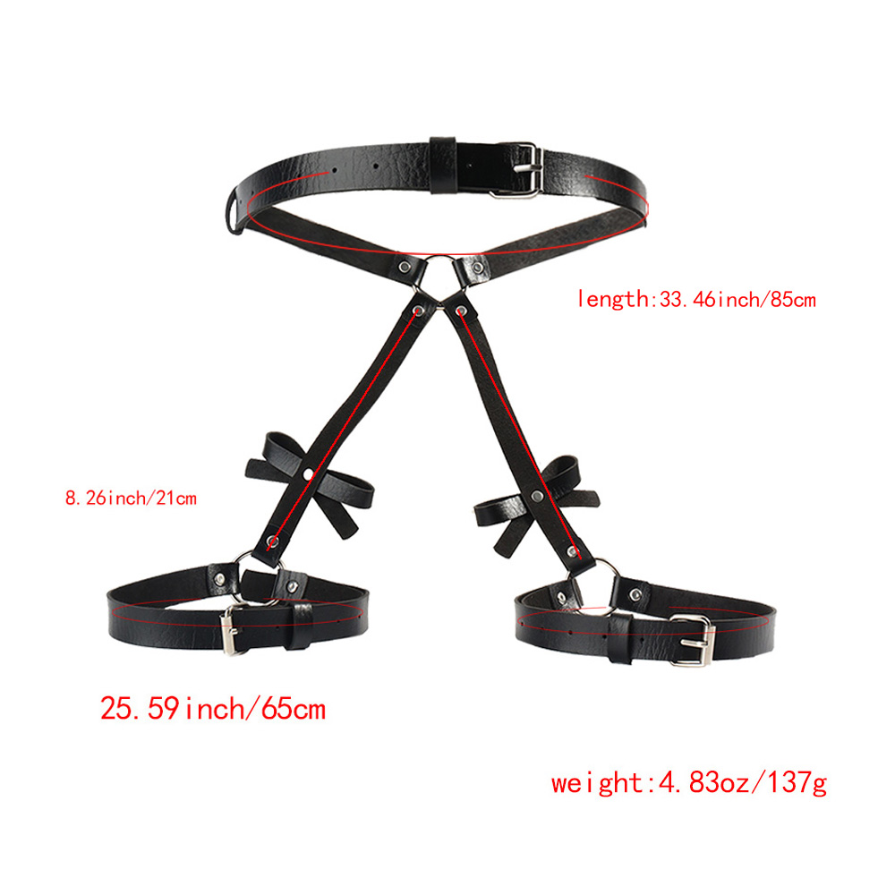 Punk Black Leather PU Bow Belt Leg Loop Sexy Harness Leather For Ladies Fun Harness Leather
