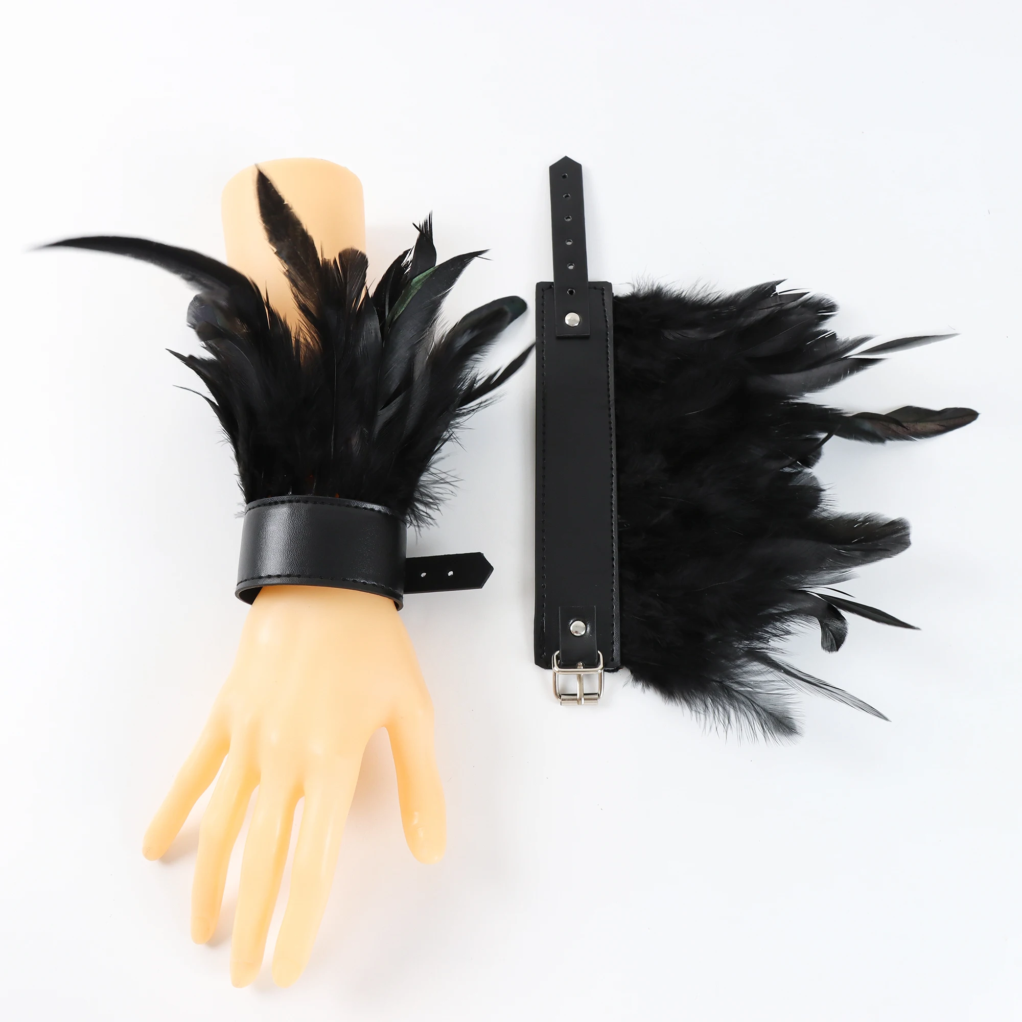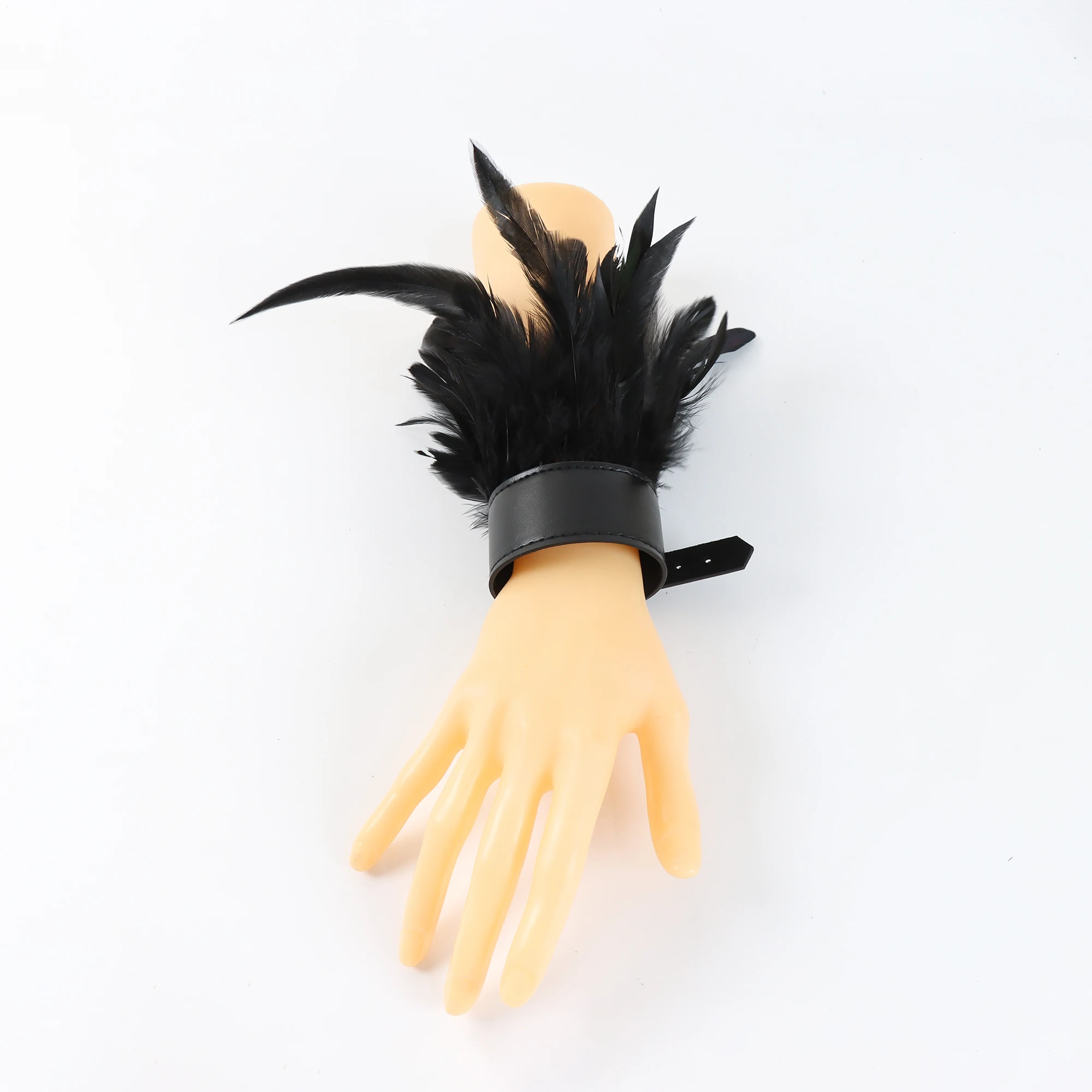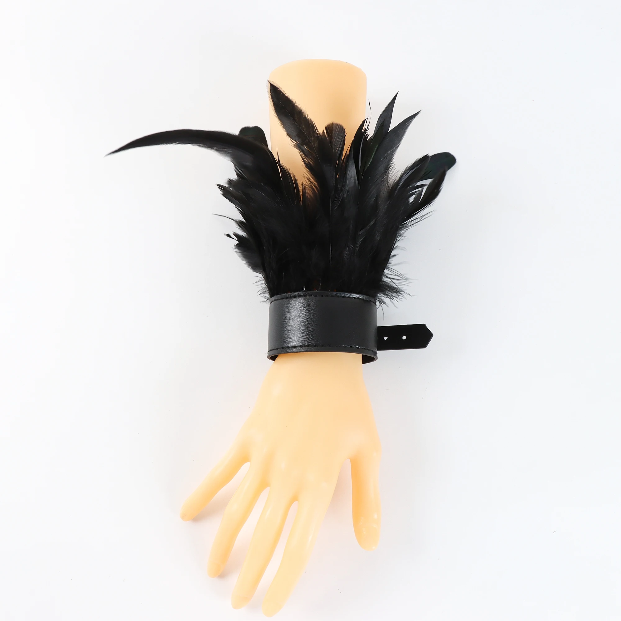 Punk Gothic Gloves Feather Wrist Cuff Carnival Stage Show Showgirl Natural Dyed Rooster Feather Arm Warmer Party Cosplay Costume