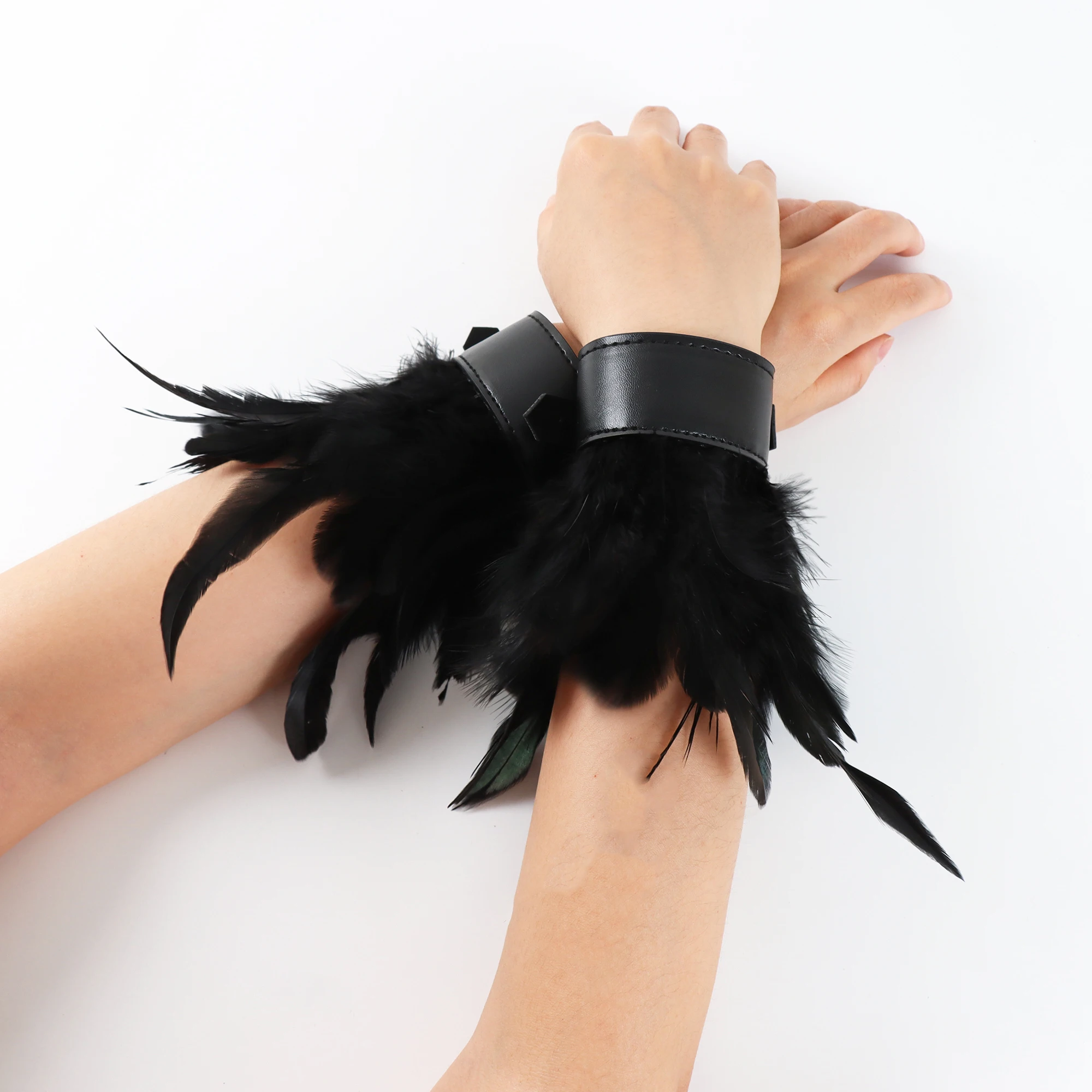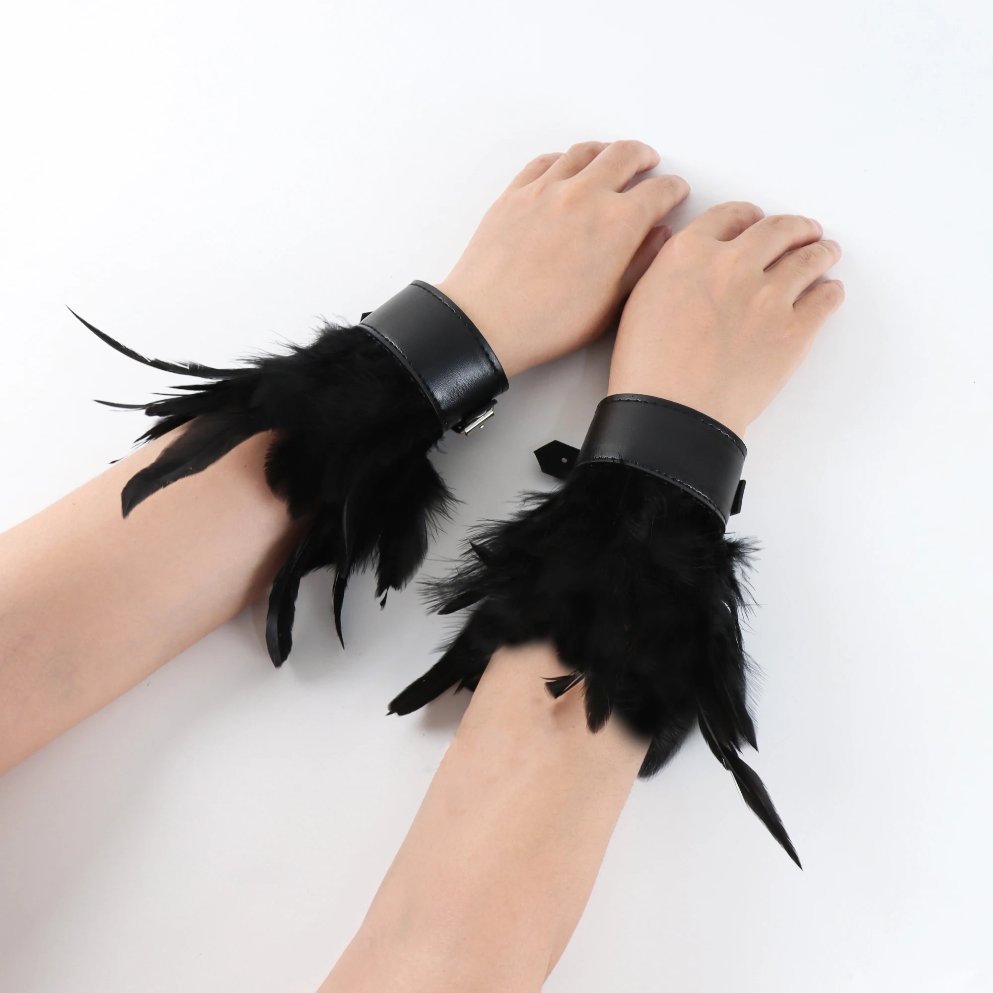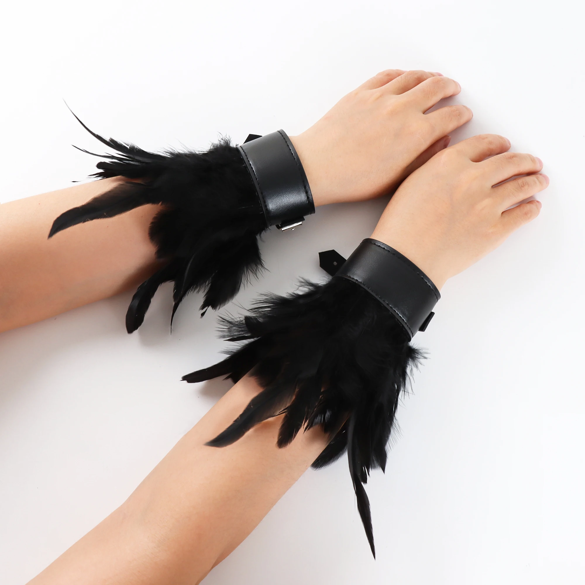 Punk Gothic Gloves Feather Wrist Cuff Carnival Stage Show Showgirl Natural Dyed Rooster Feather Arm Warmer Party Cosplay Costume