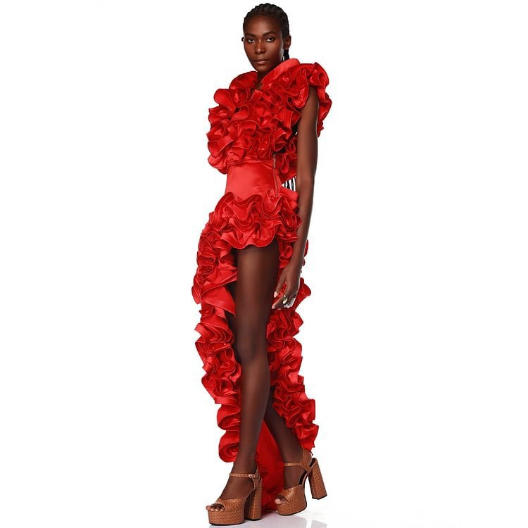 Red Deep V Sexy Heavy Industry Lace One-piece Swimsuit Suit Women