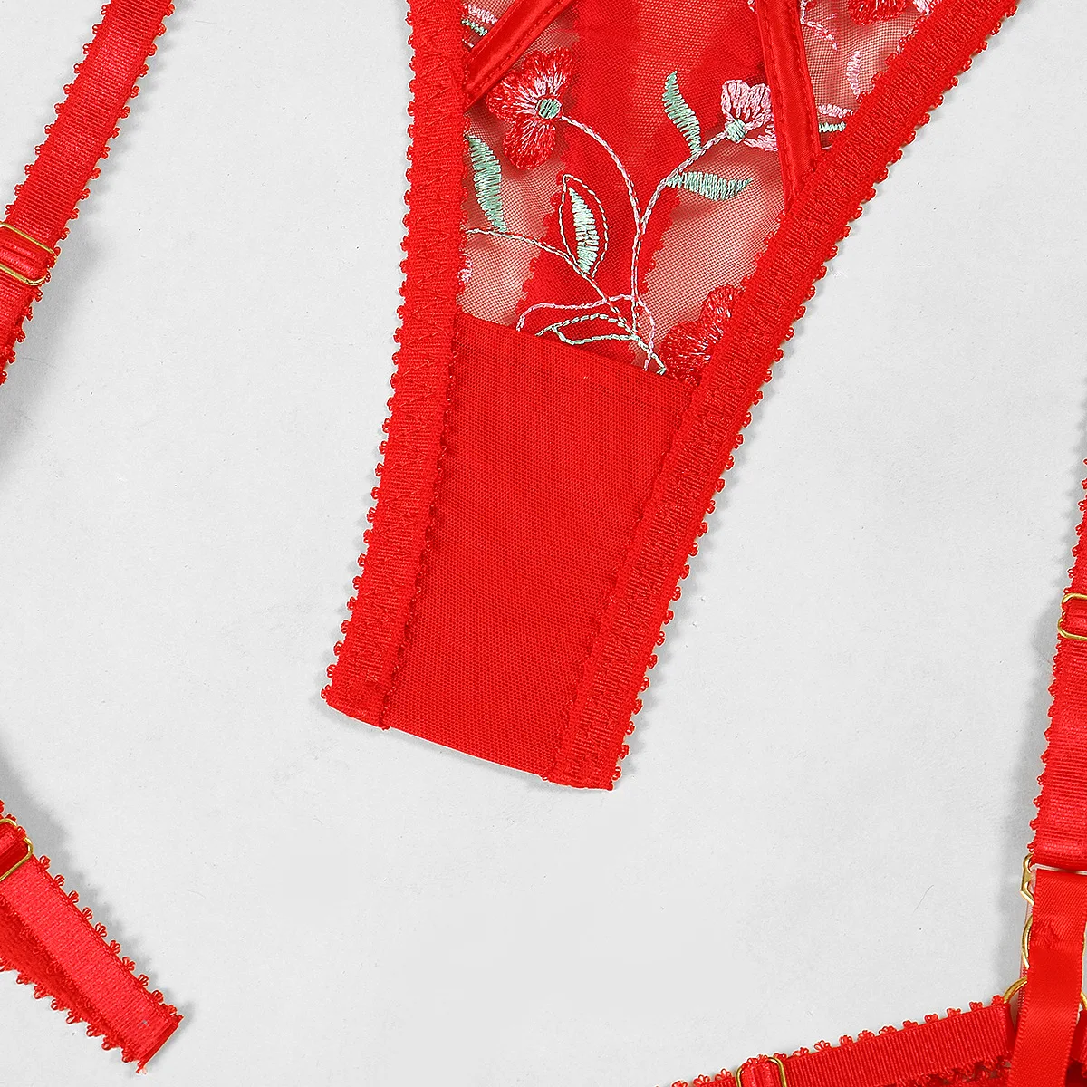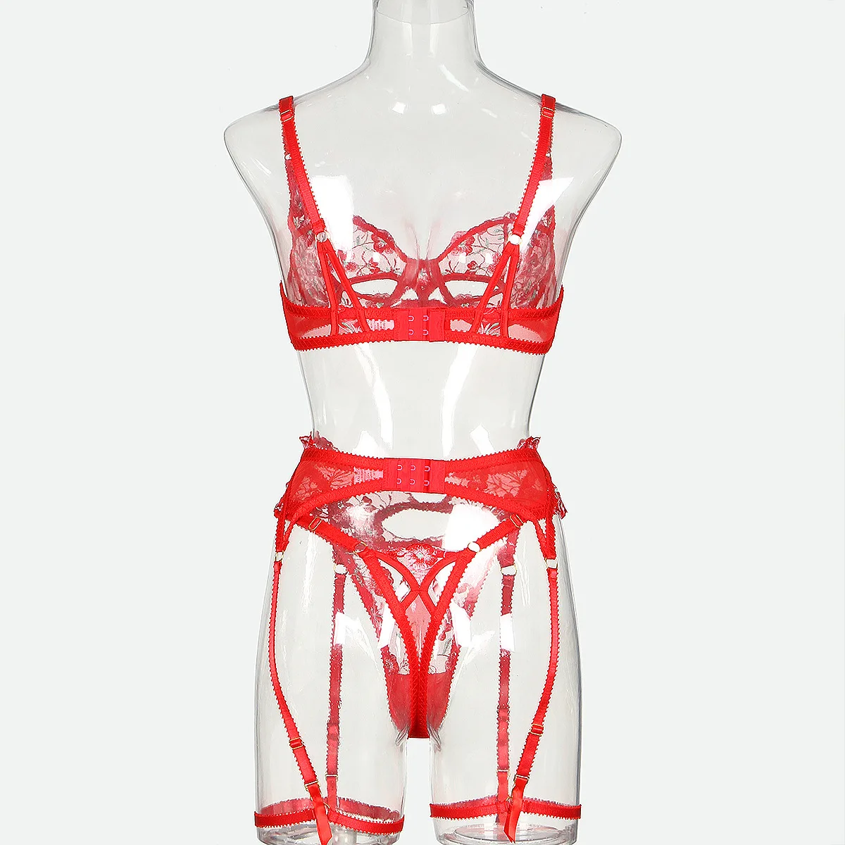 Red Floral Lingerie Lace Transparent Romantic Underwear k Costume With Push Up Bra Cutting Beautiful Set