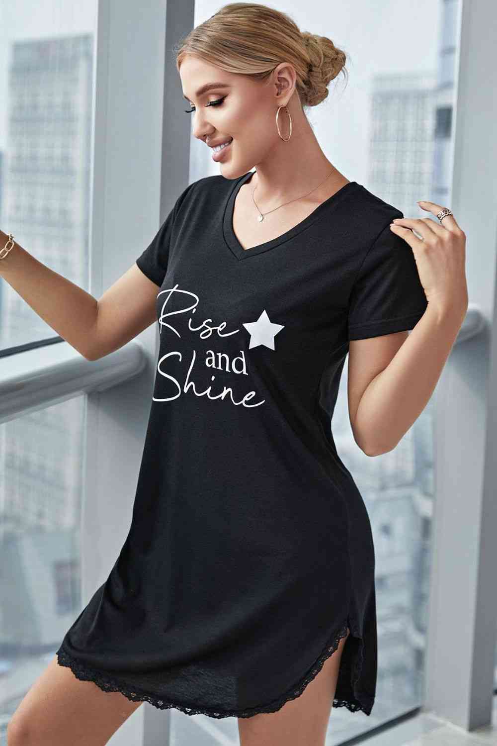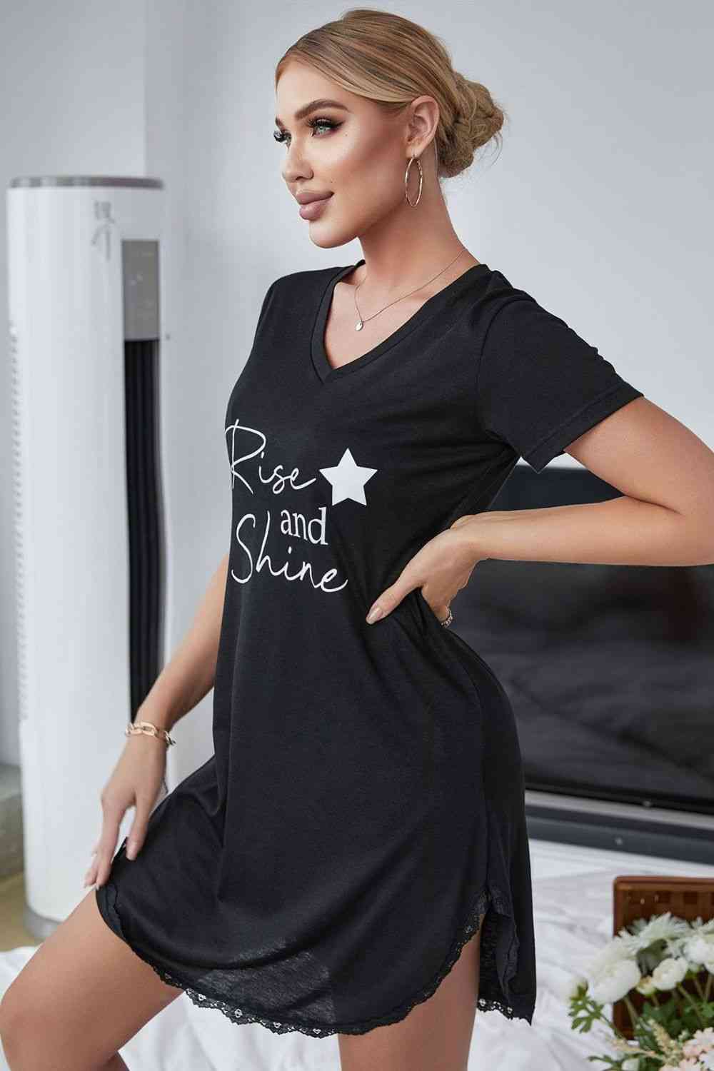 RISE AND SHINE Contrast Lace V-Neck T-Shirt Dress