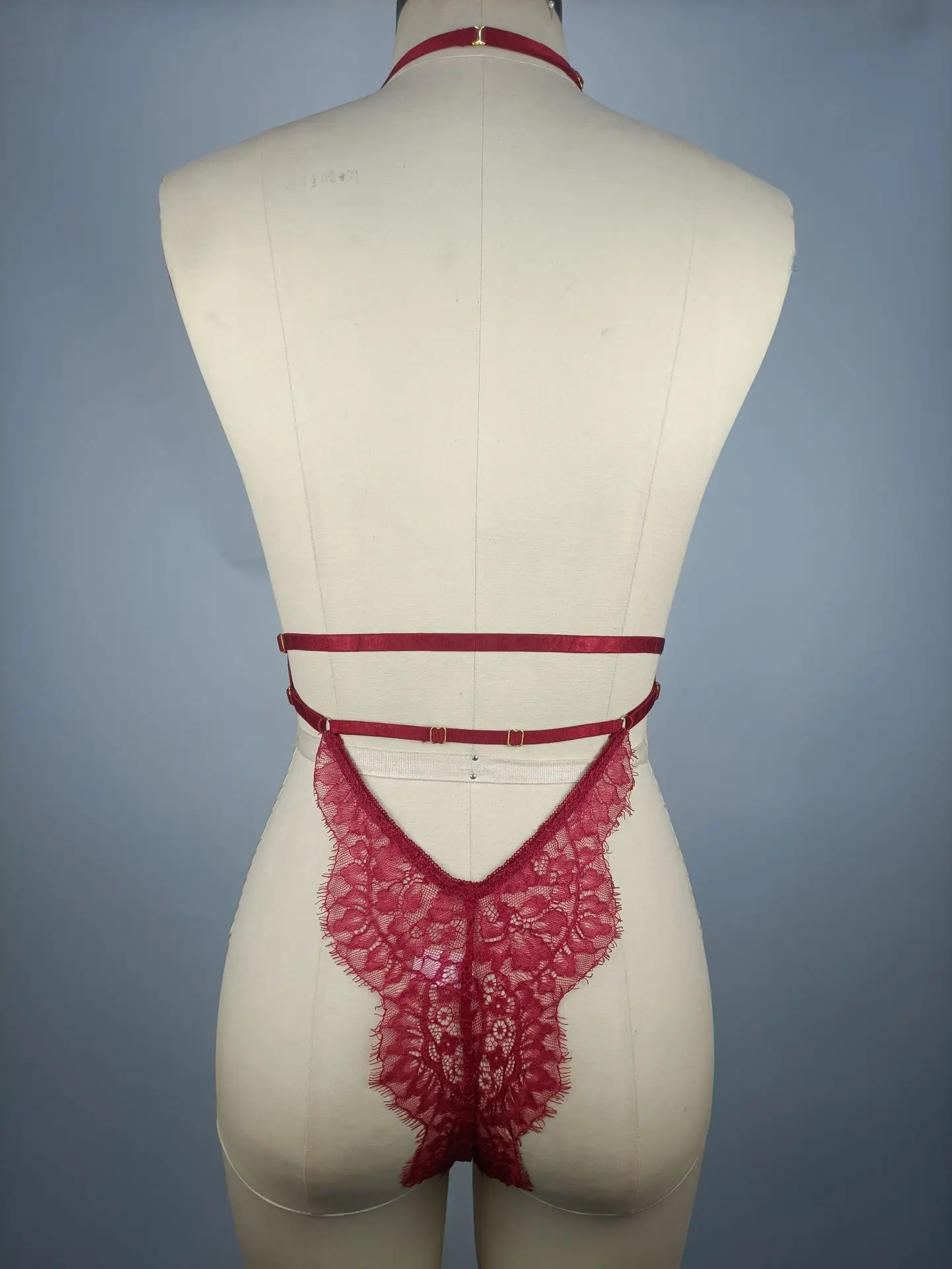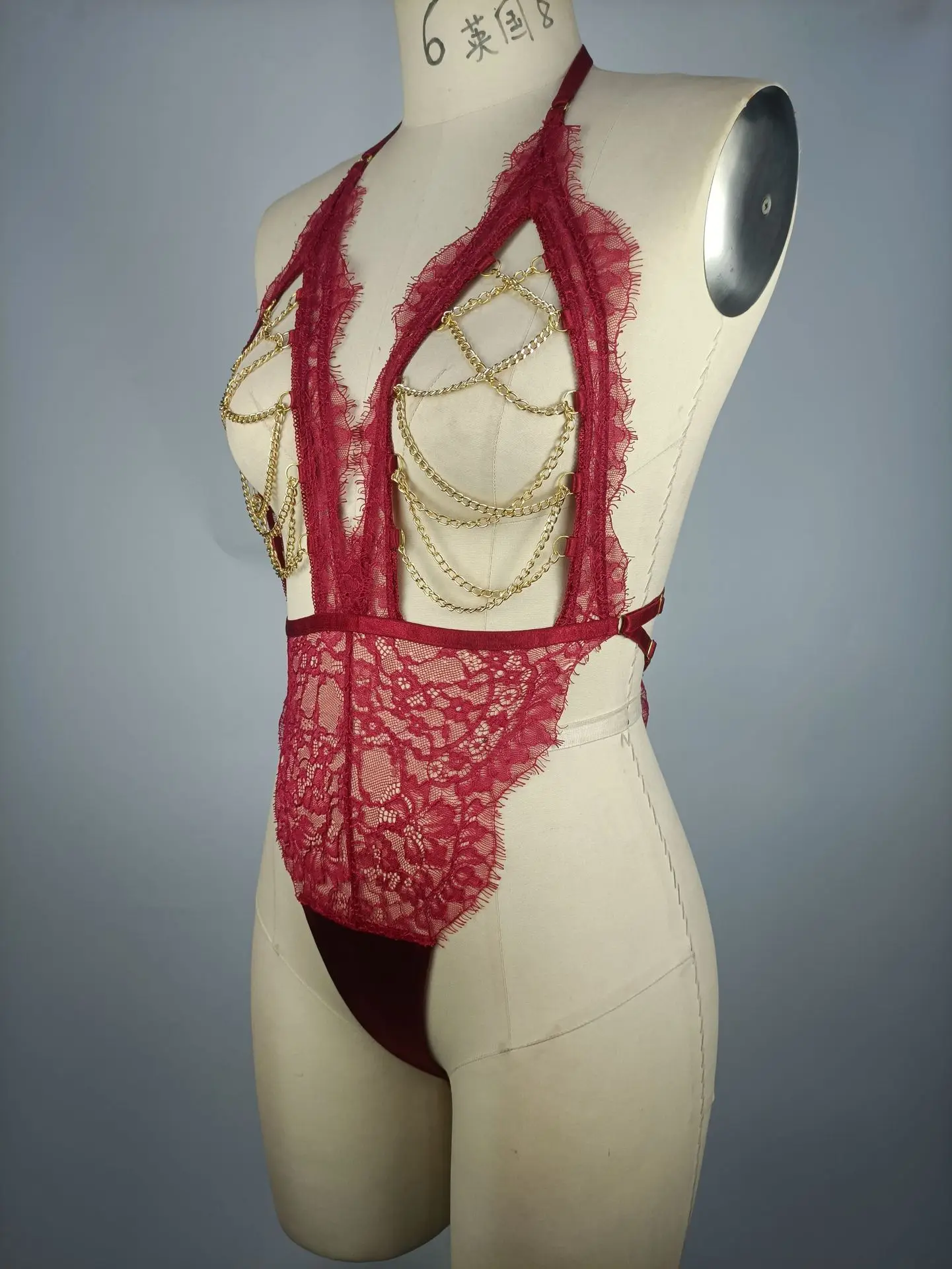 Sensual Bodysuit With Chain y Body Lingerie Bodystocking Open Bra High Cut Backless Tights