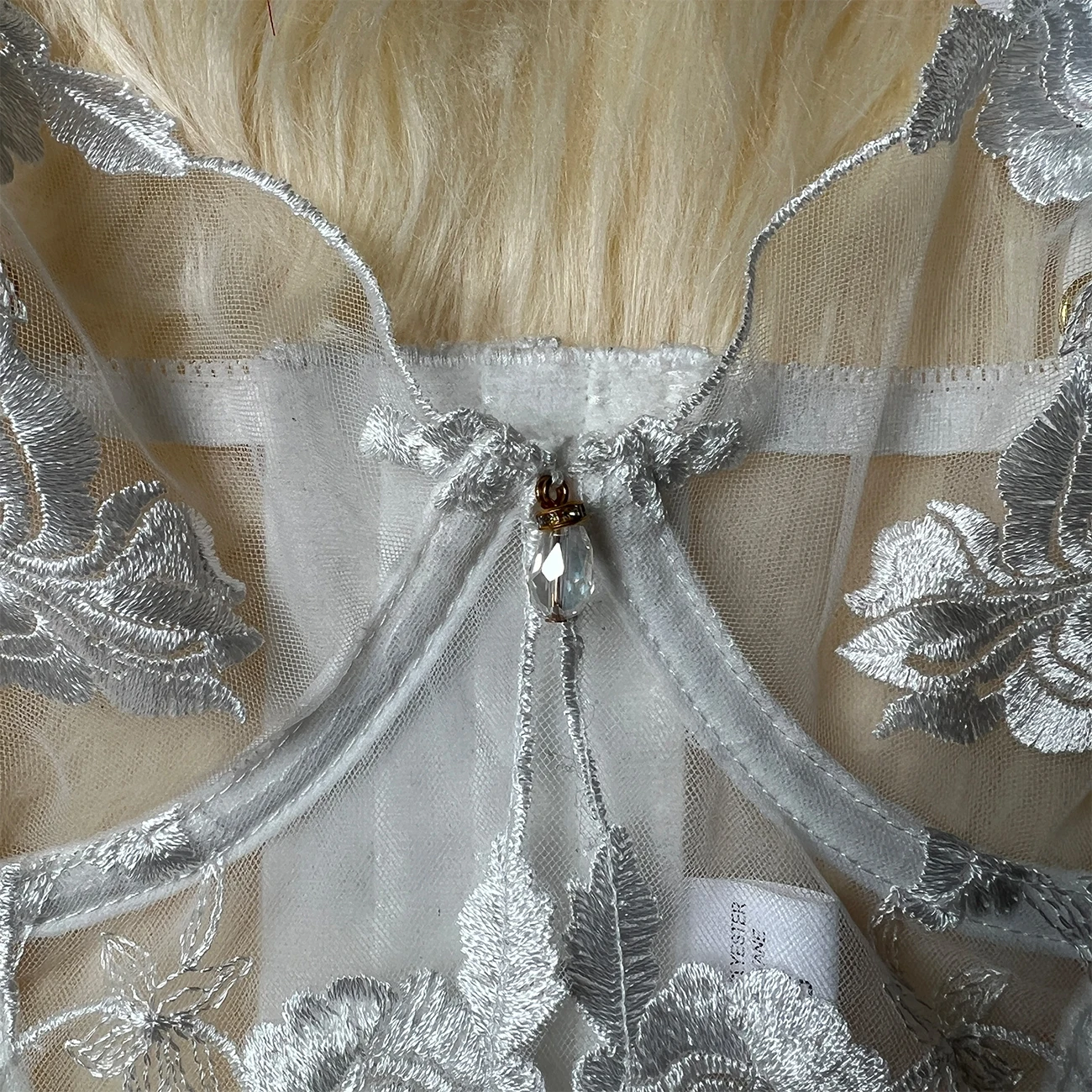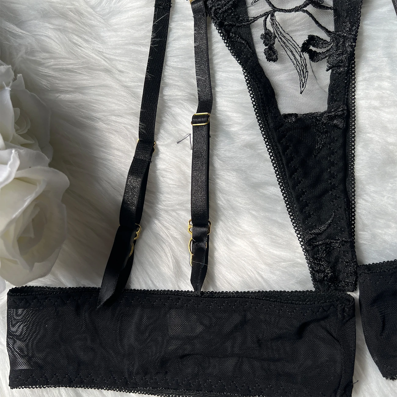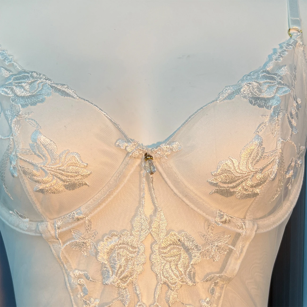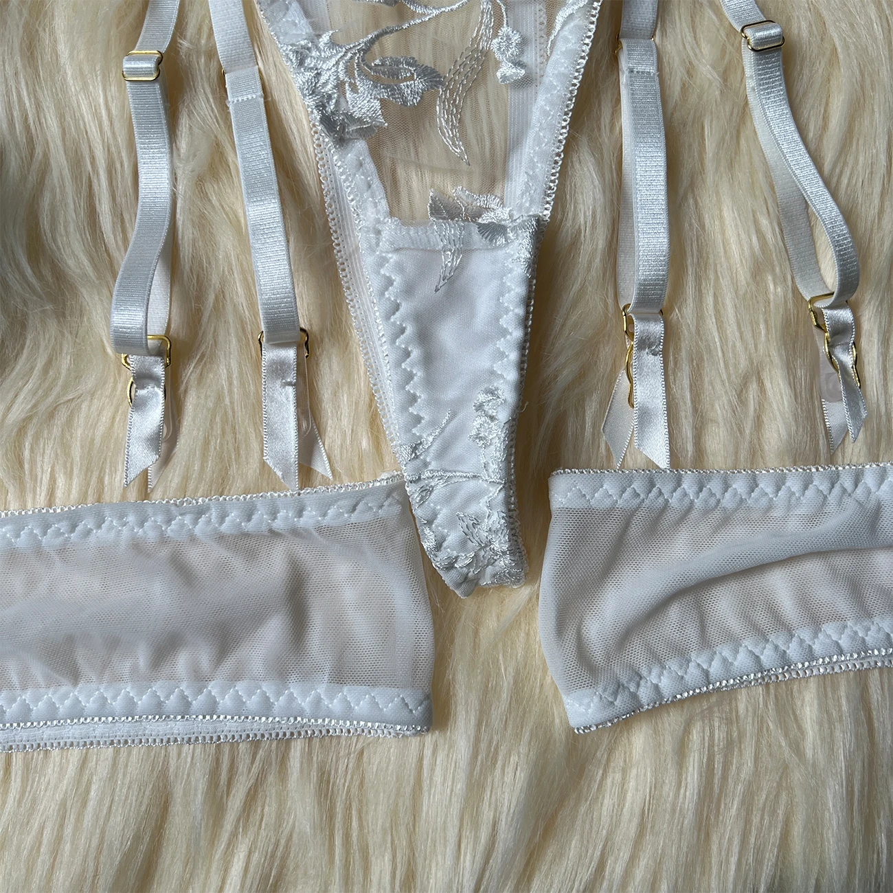Sensual Lingerie Floral Lace Transparent Costume Bride Fantasy Crotchless Invisible Thongs Suit