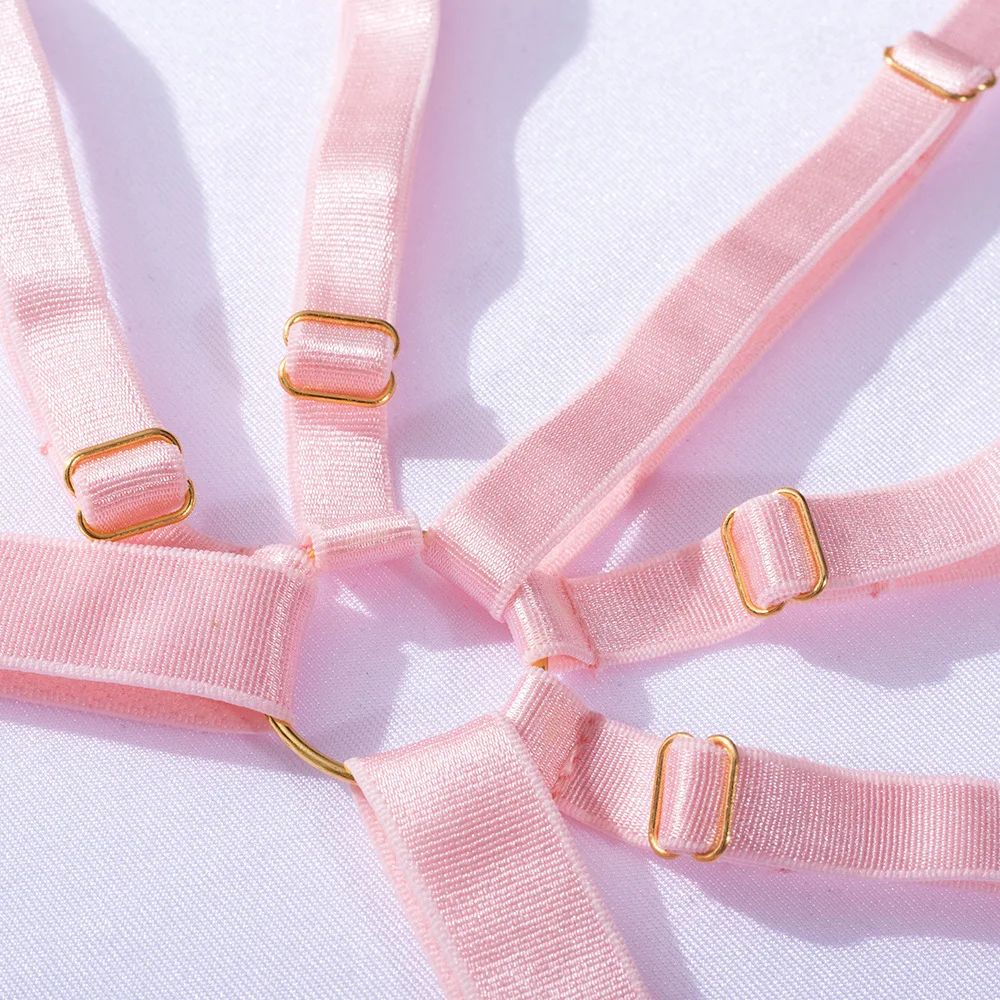 Sensual Lingerie Hollow Bra Woman Without Censorship Light Pink Costume Halter y Bilizna Set Of