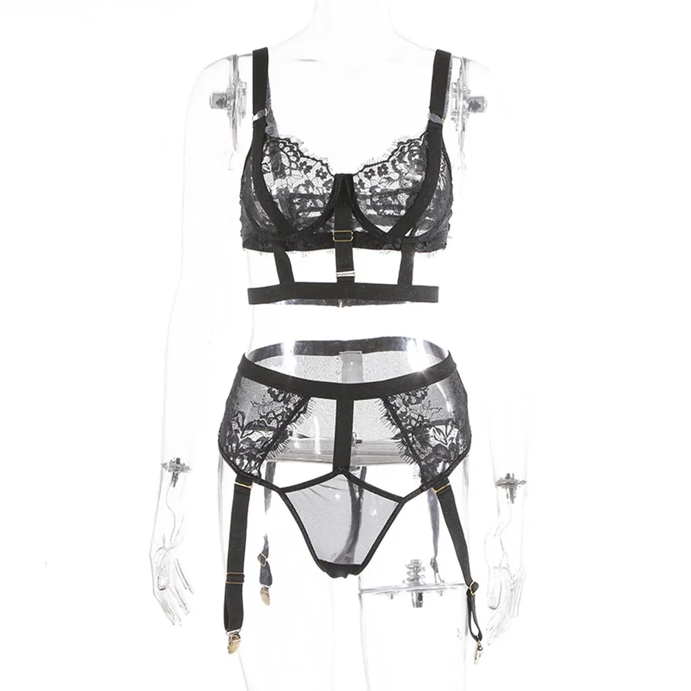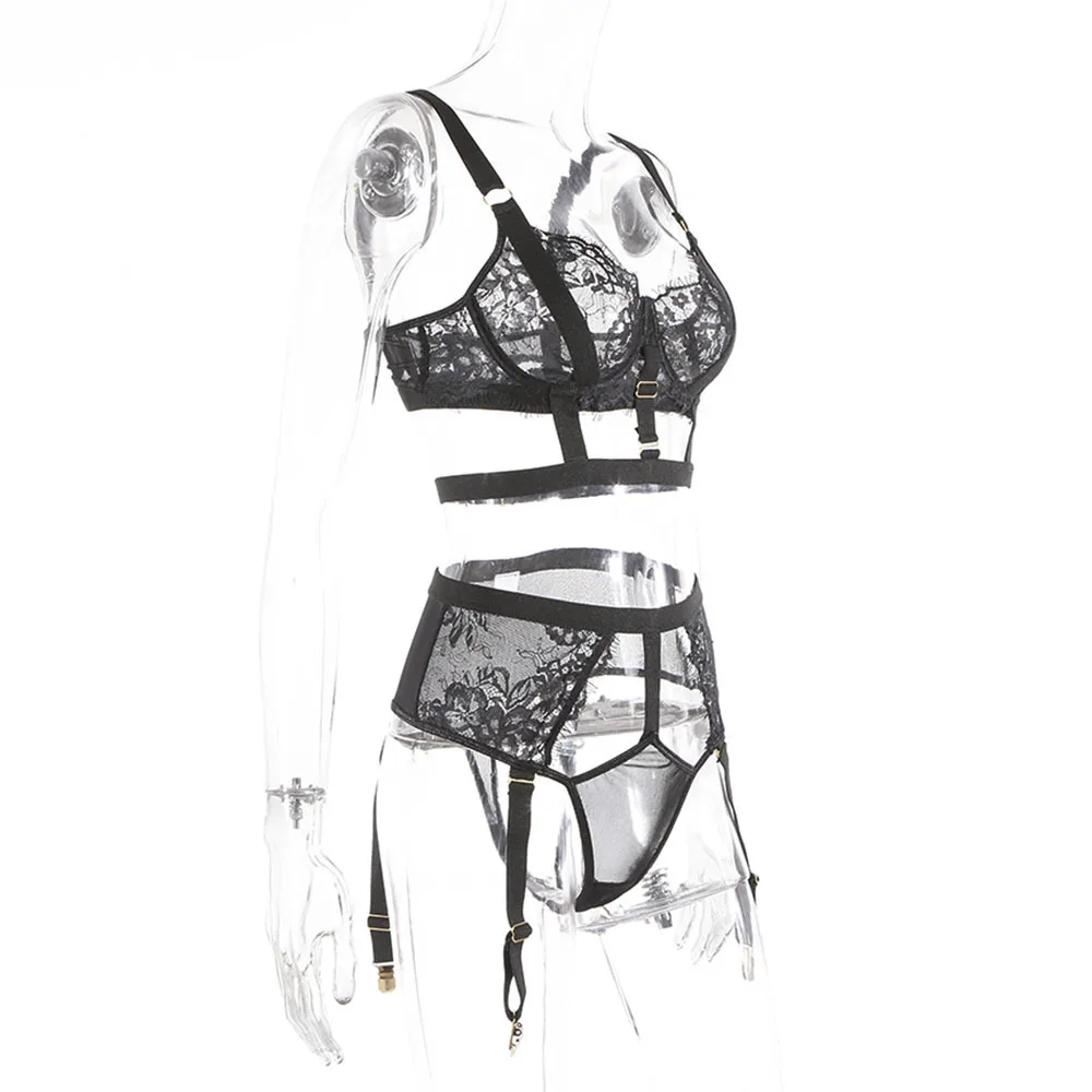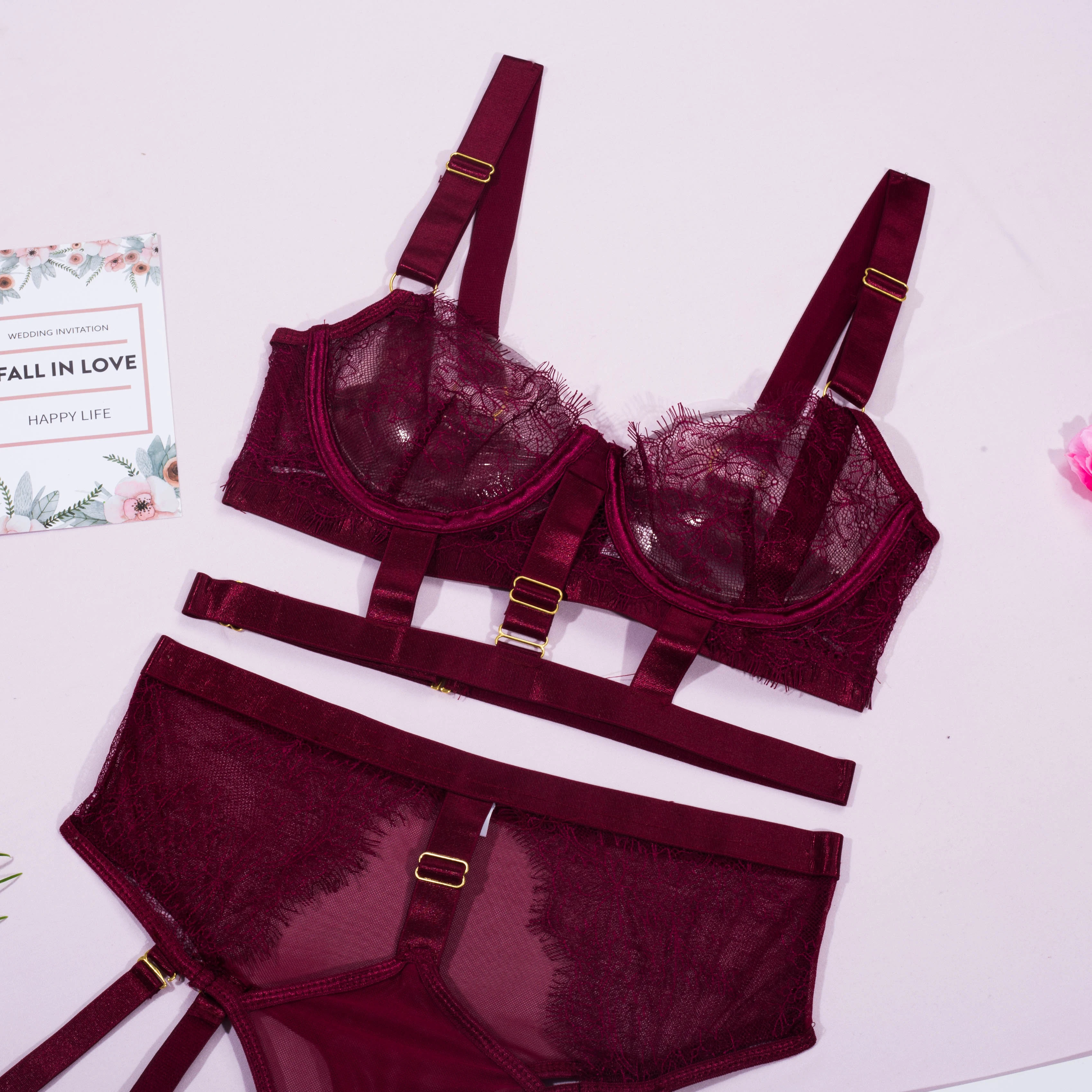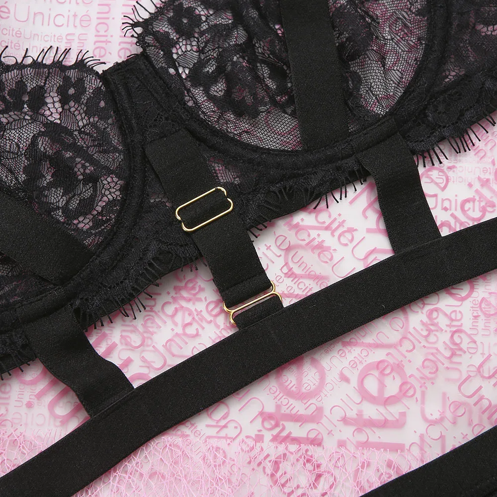 Sensual Lingerie Woman Hot y Hollow Out Bra Lace Briefs Sets Push Up Underwire Exotic Costumes Lace Underwear
