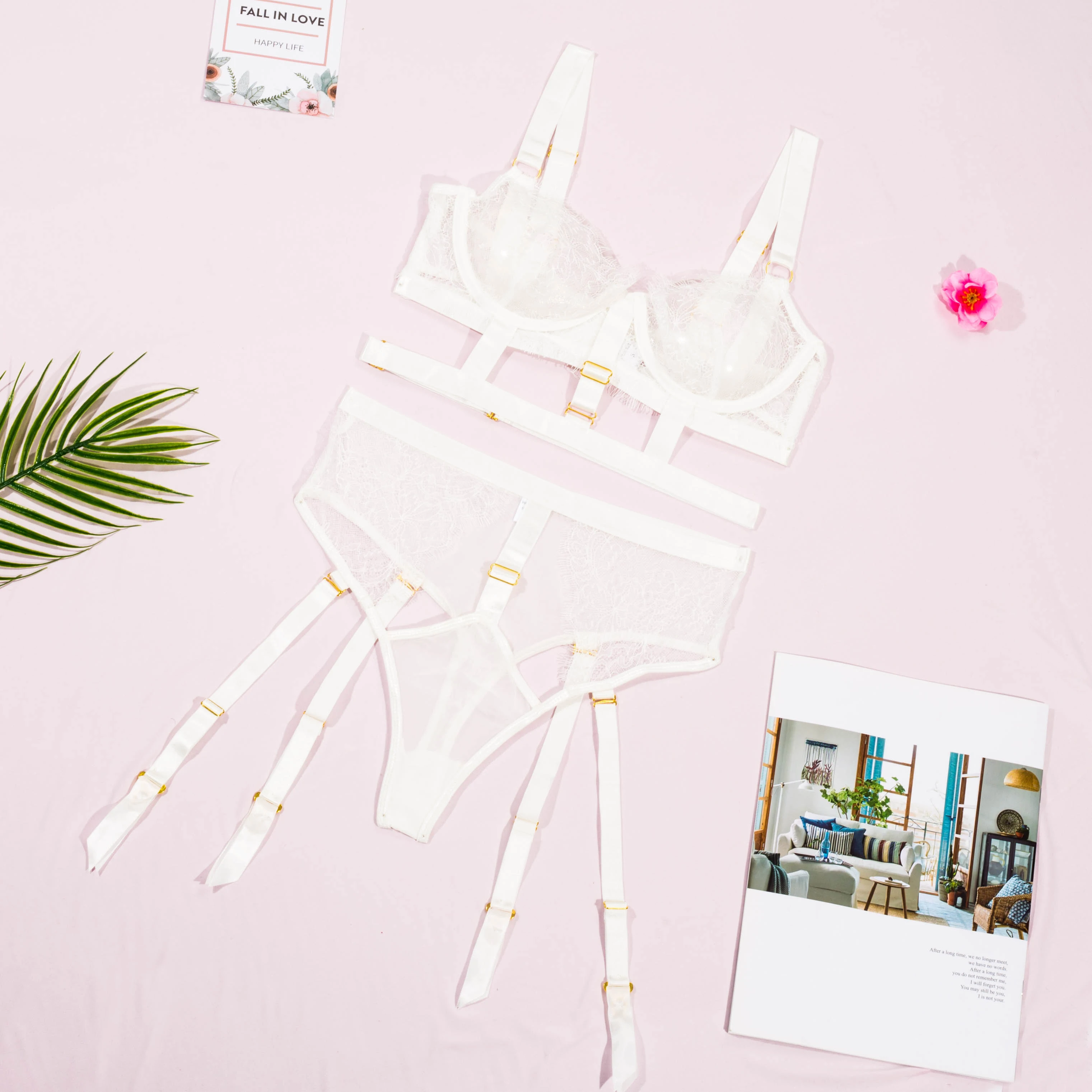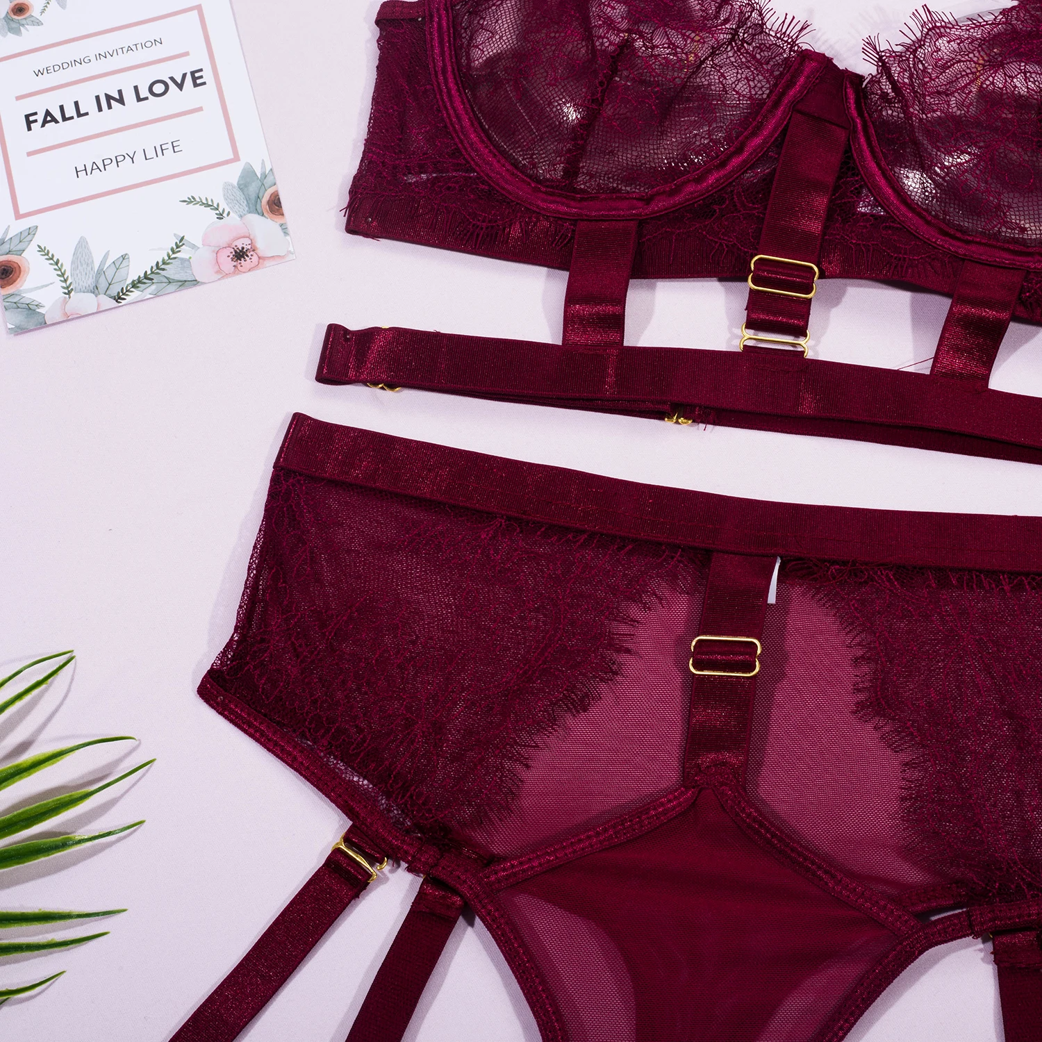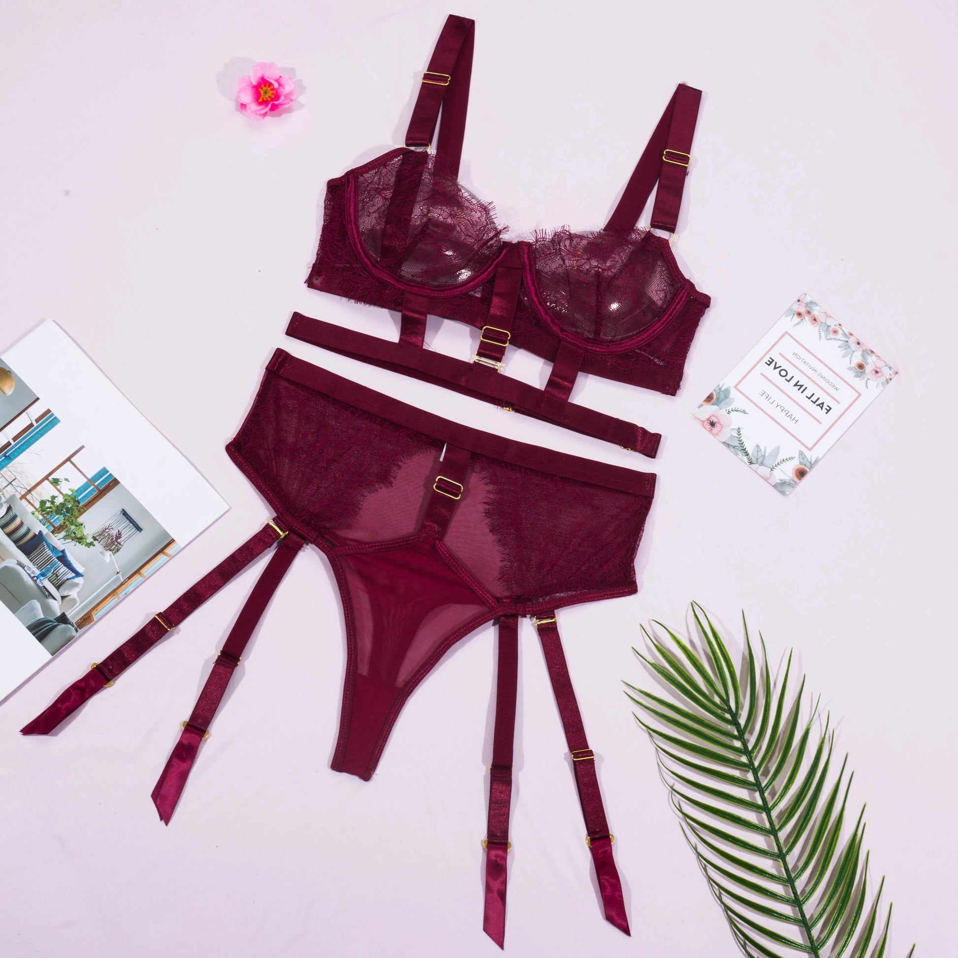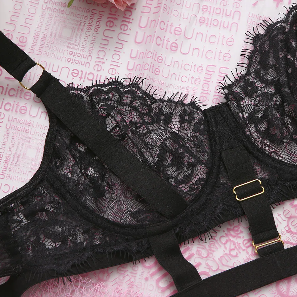 Sensual Lingerie Woman Hot y Hollow Out Bra Lace Briefs Sets Push Up Underwire Exotic Costumes Lace Underwear