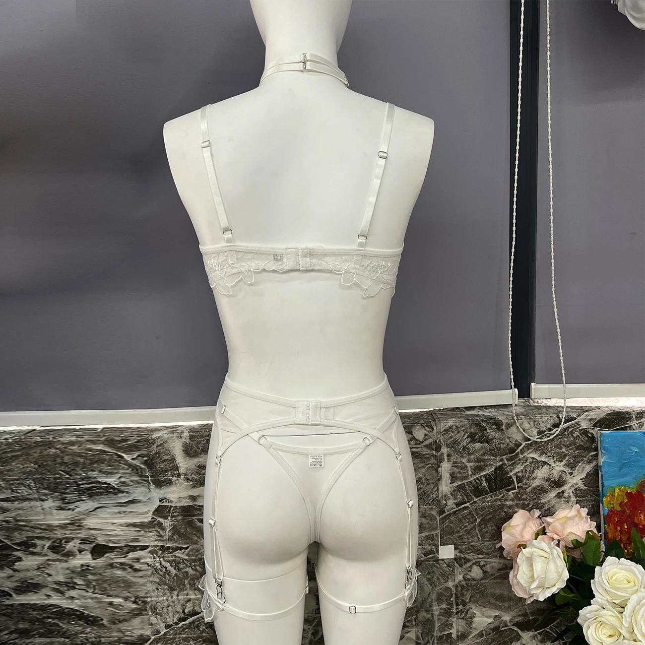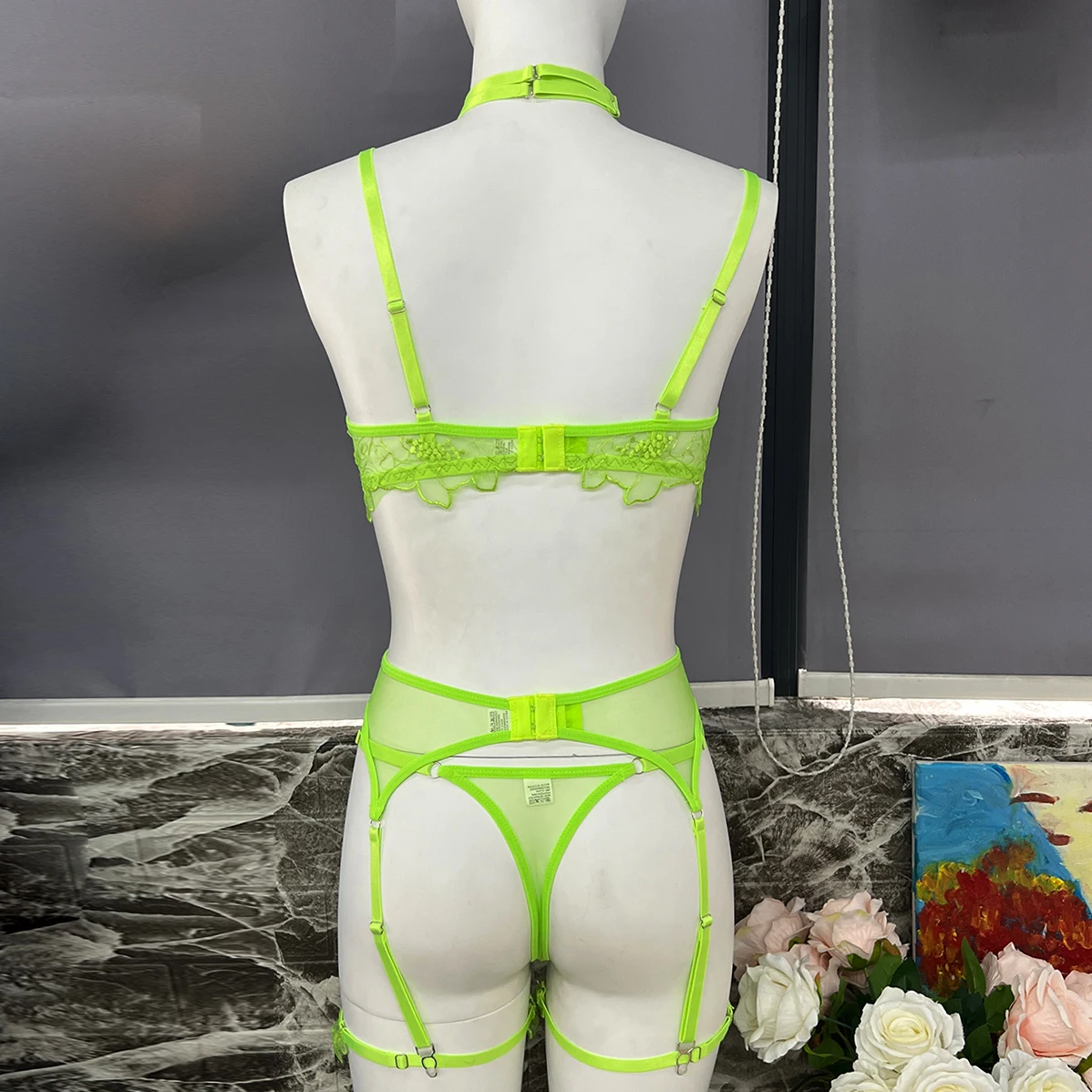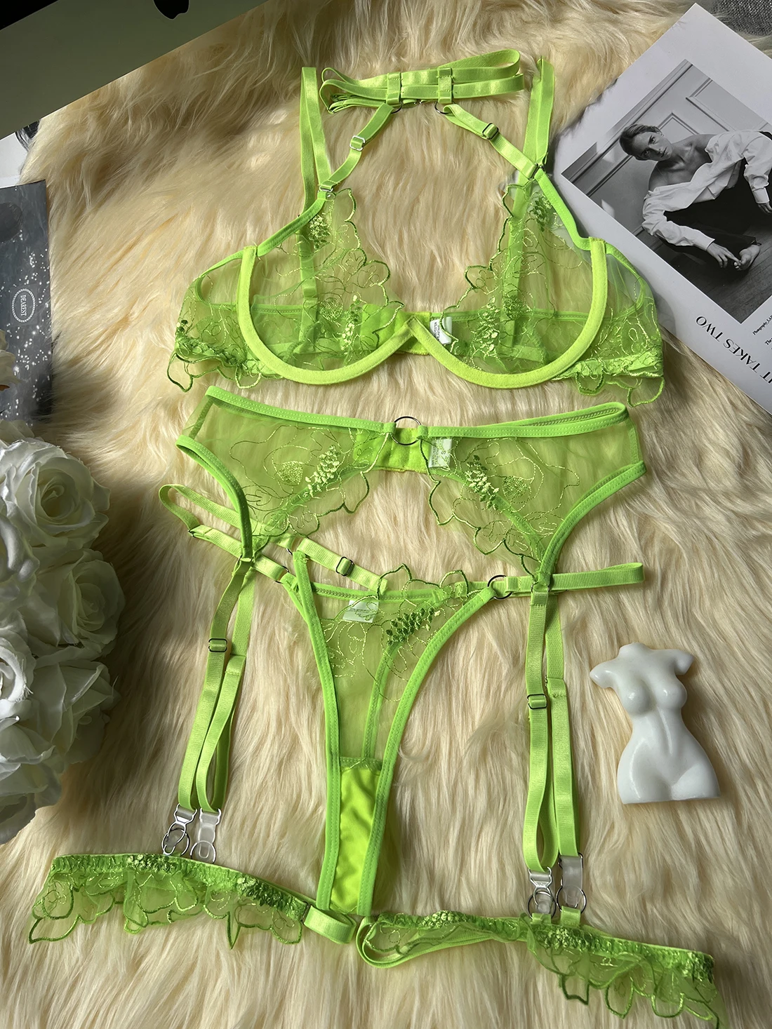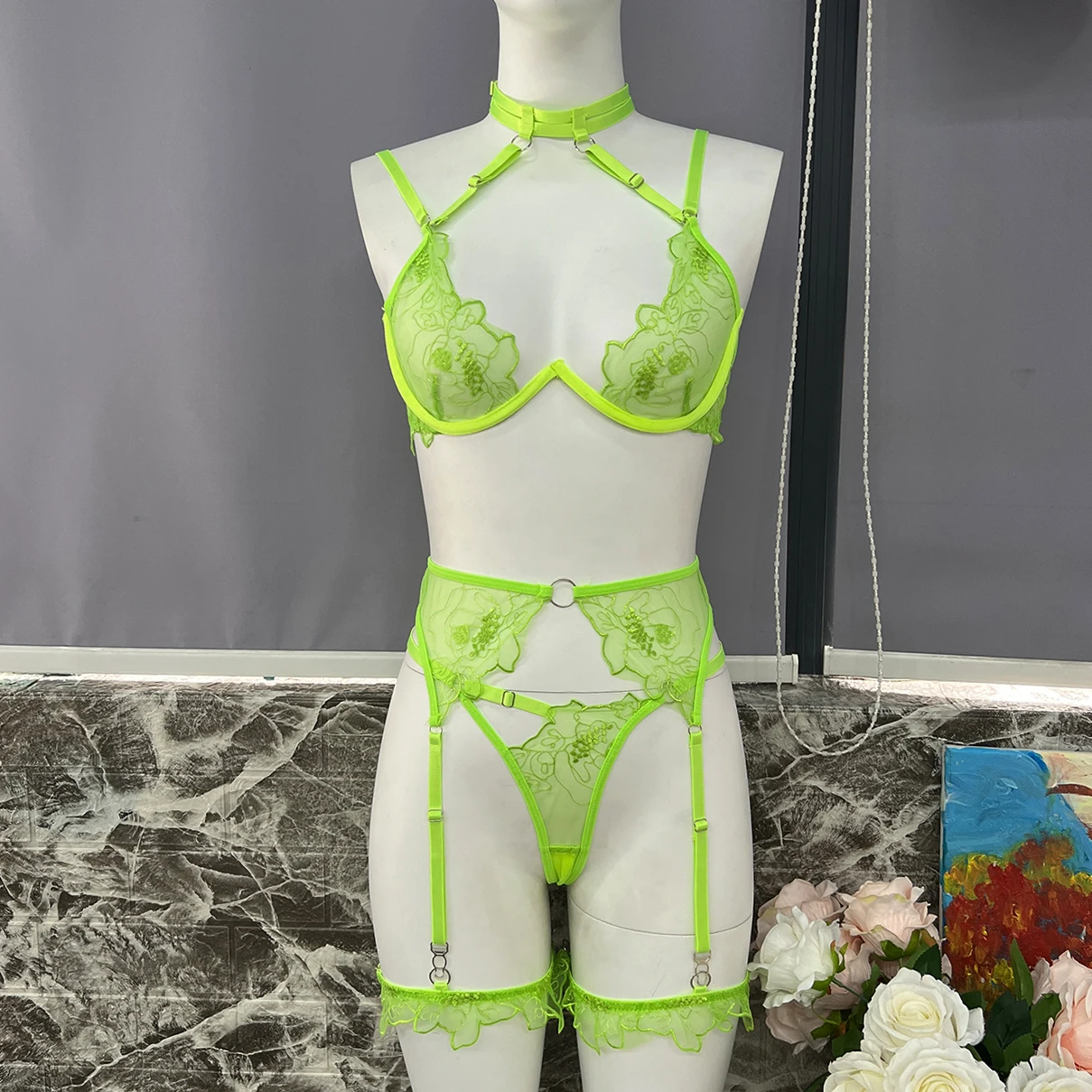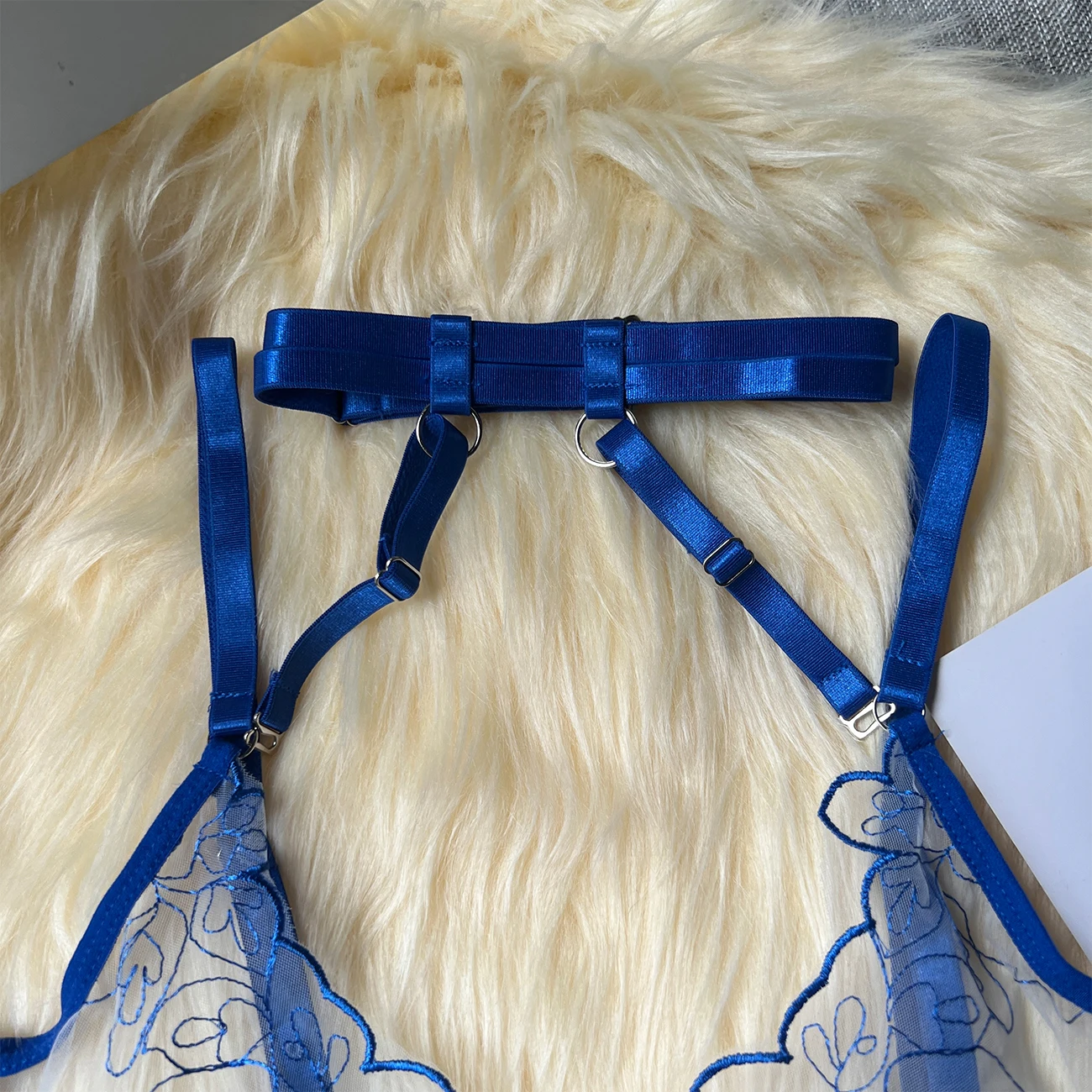 Sensual Romantic Lingeries Transparent Lace Embroidery Hot Girl Underwear See Through Lace Set Half Cup Push Up Outfit