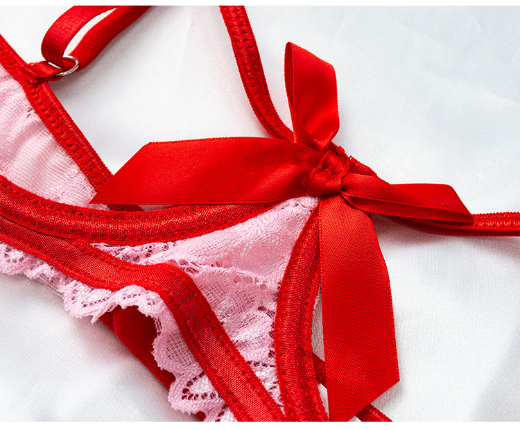 Sex Toys Sexy Seduction Lace T Back Bow Hollow Out Cutout Underwear Bra Flirting Sets