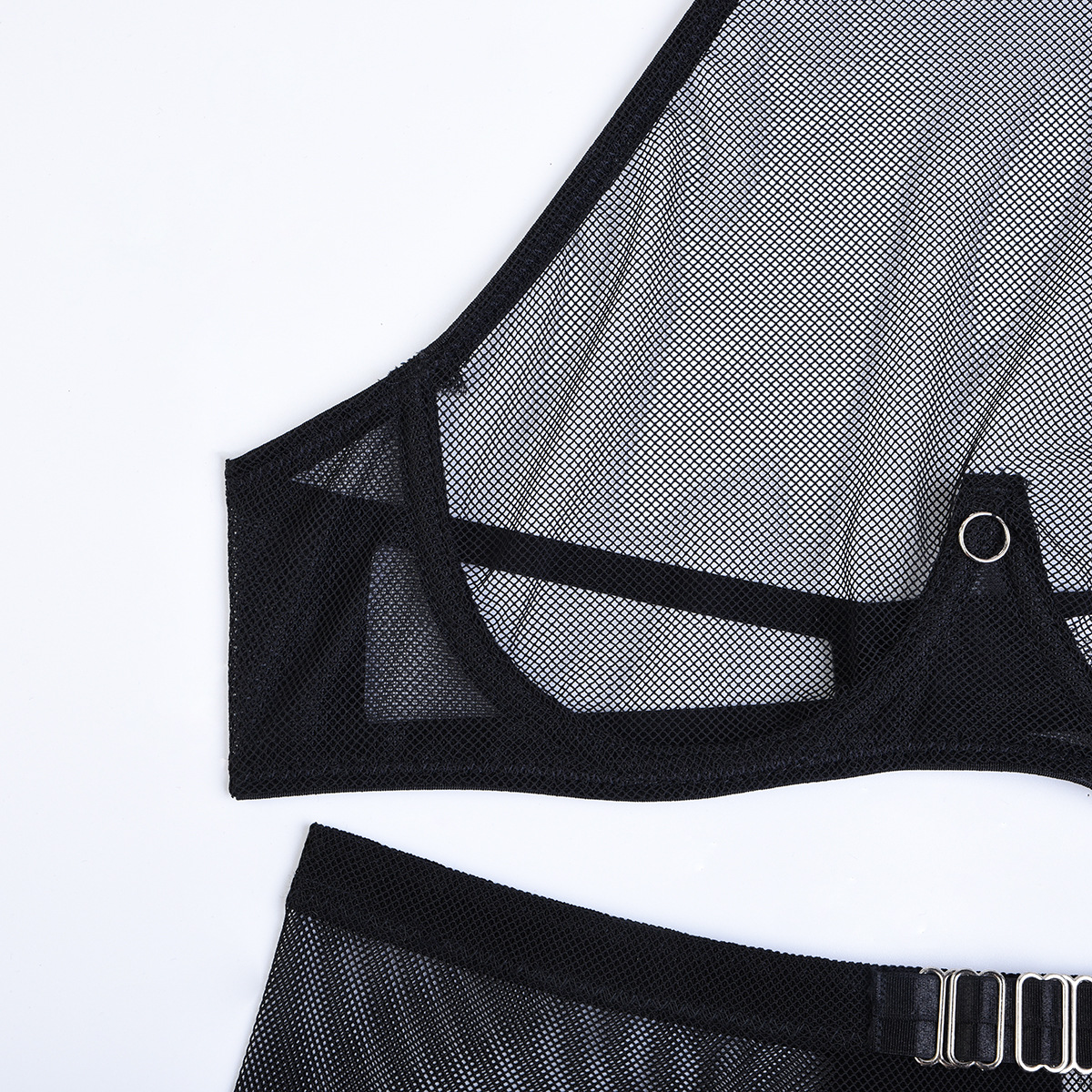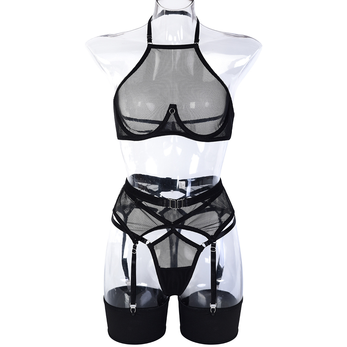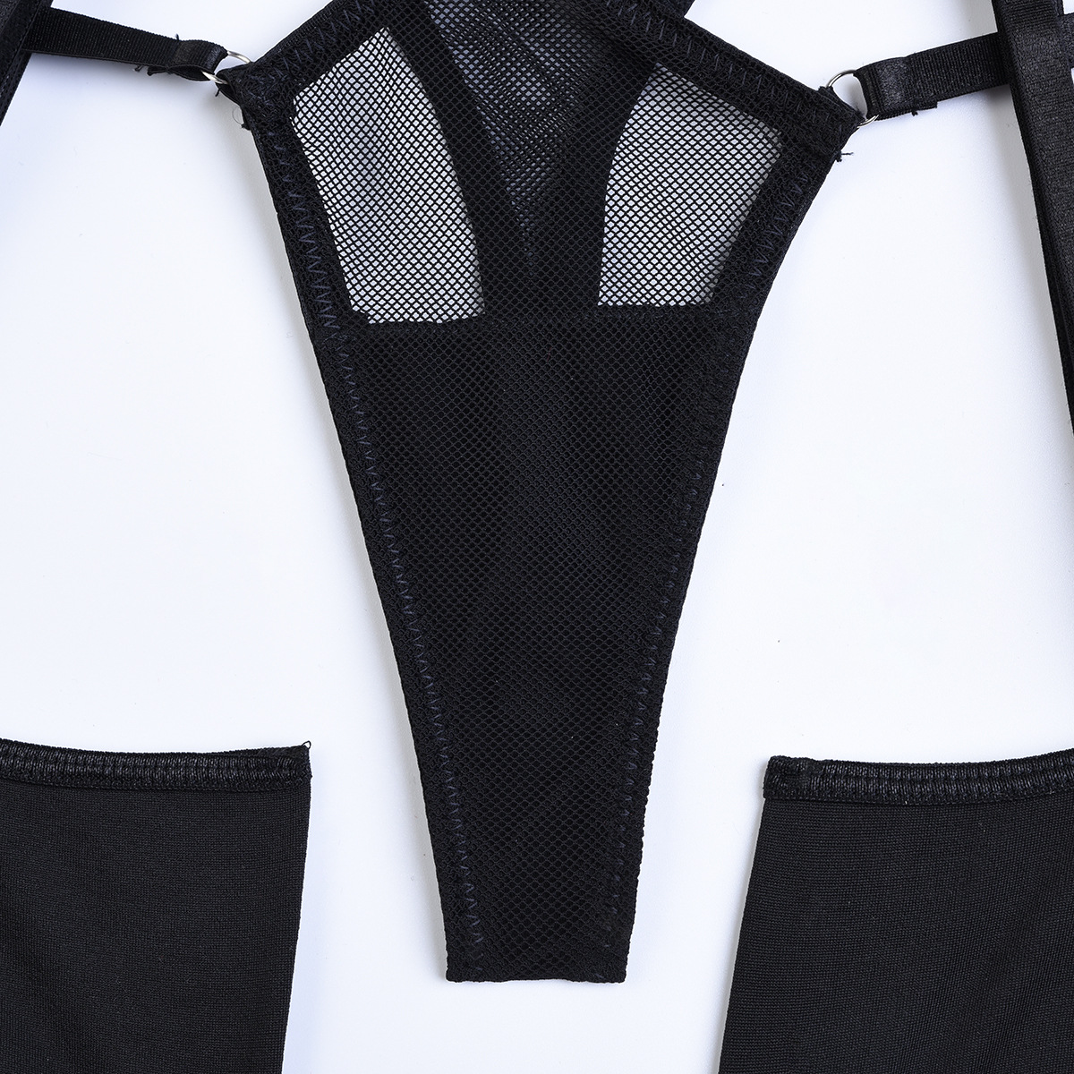 Sexy 5 Piece Set Autumn Corset Underwear with Steel Ring Leg Ring Mesh Suit