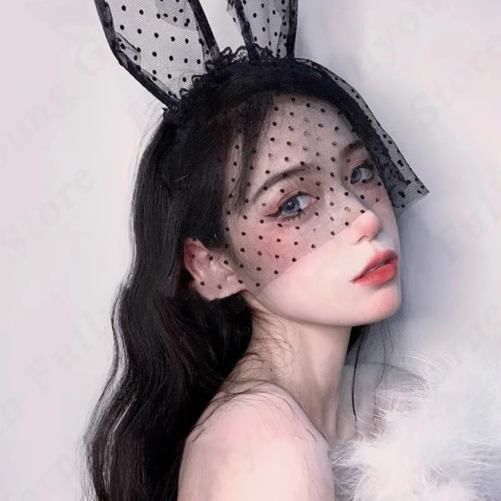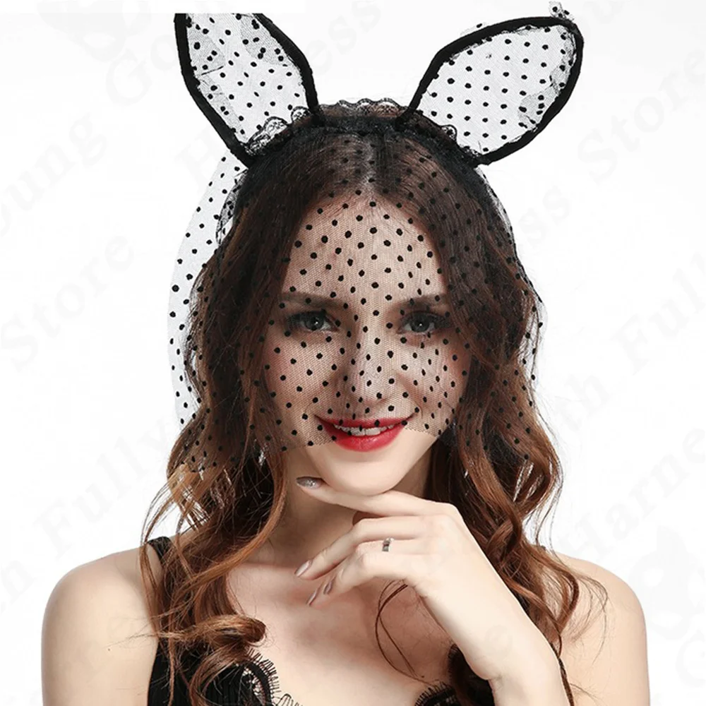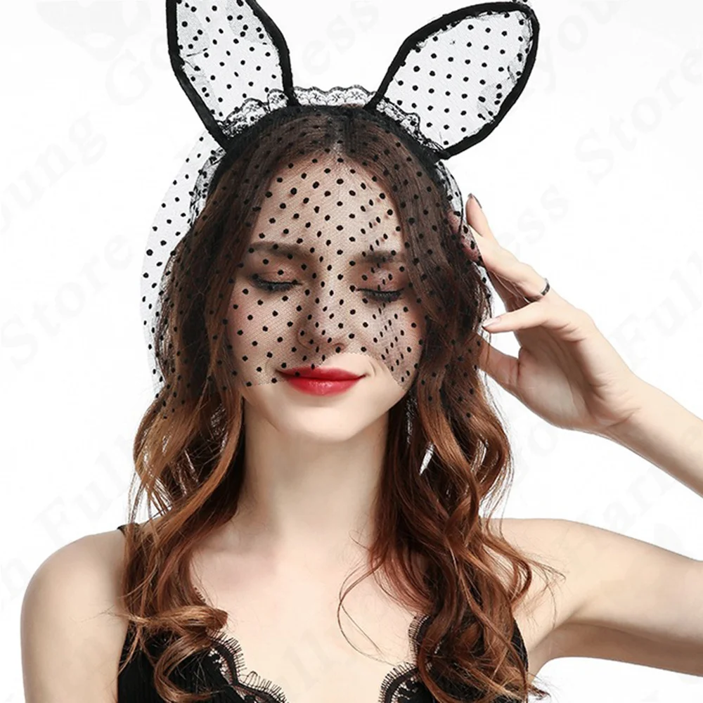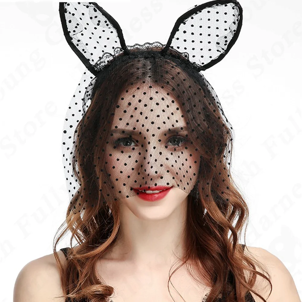 Cosplay Party Masquerade Headwear Lace Veil Cute Cat and Rabbit Ears Cosplay Headband Hairpin Women Squid Game Anime