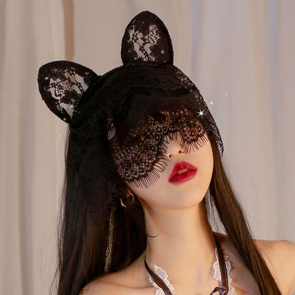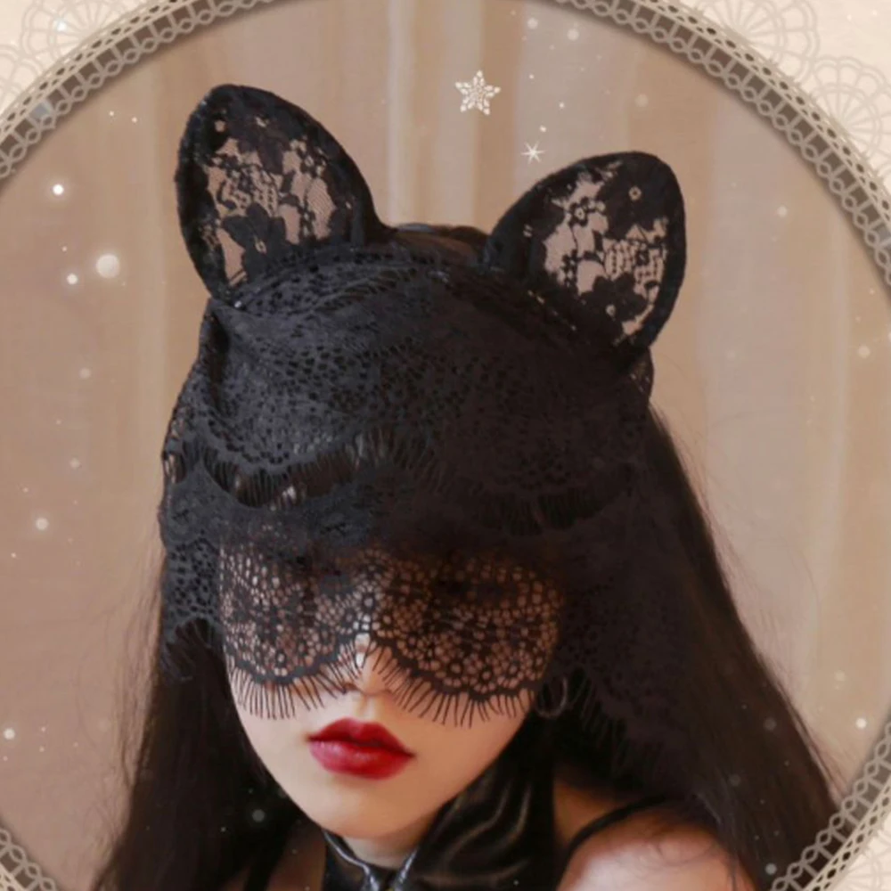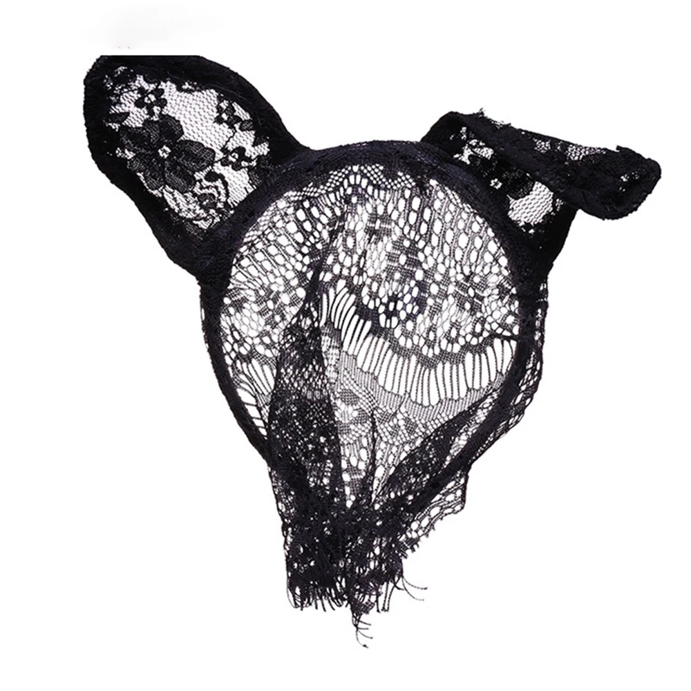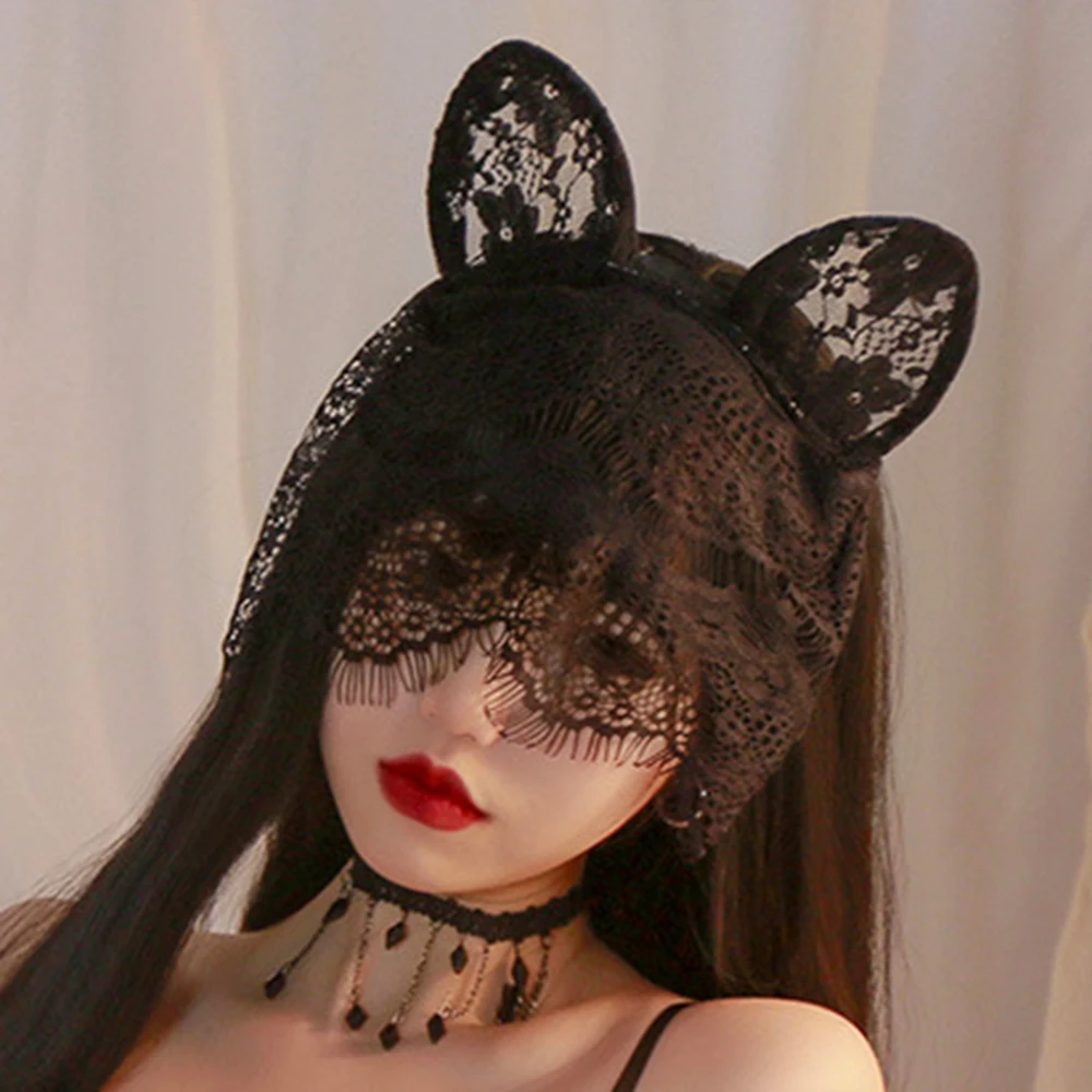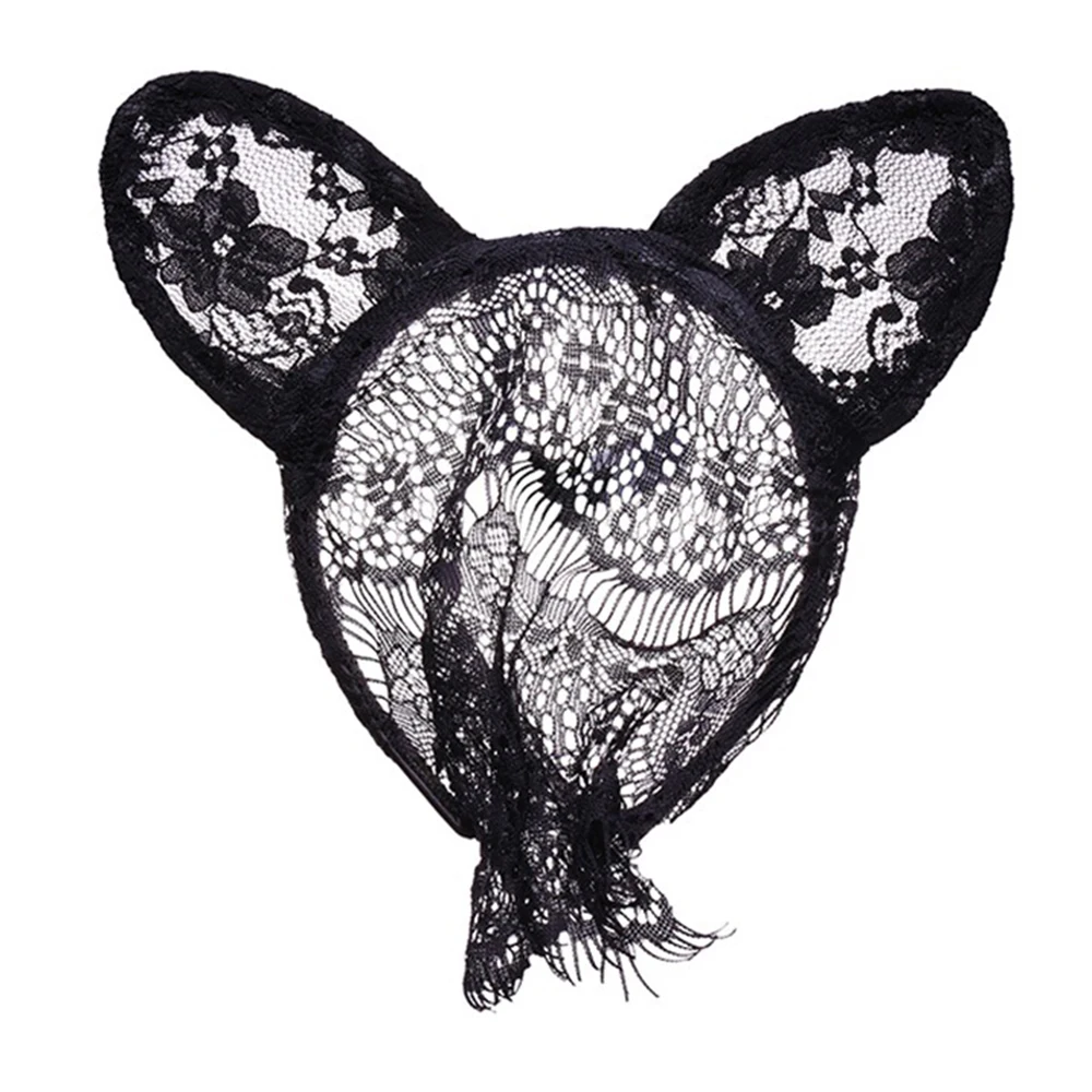 Cosplay Party Masquerade Headwear Lace Veil Cute Cat and Rabbit Ears Cosplay Headband Hairpin Women Squid Game Anime