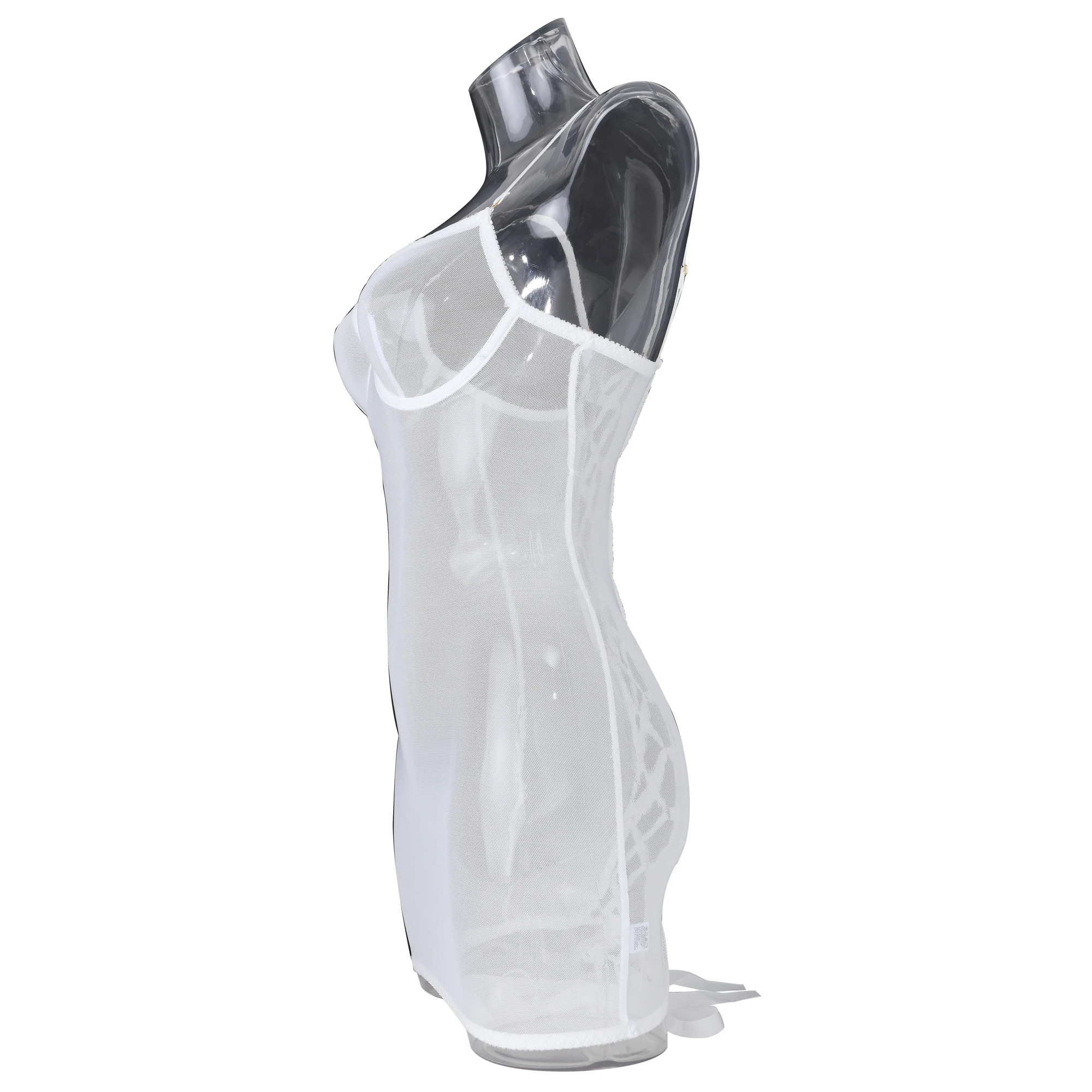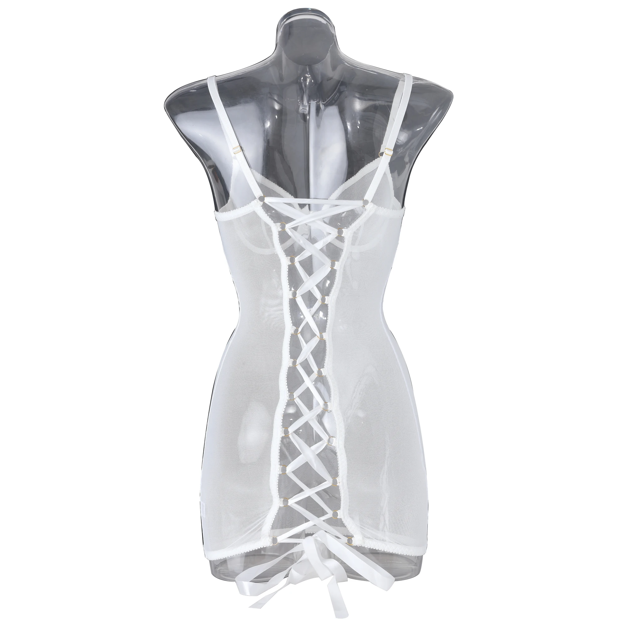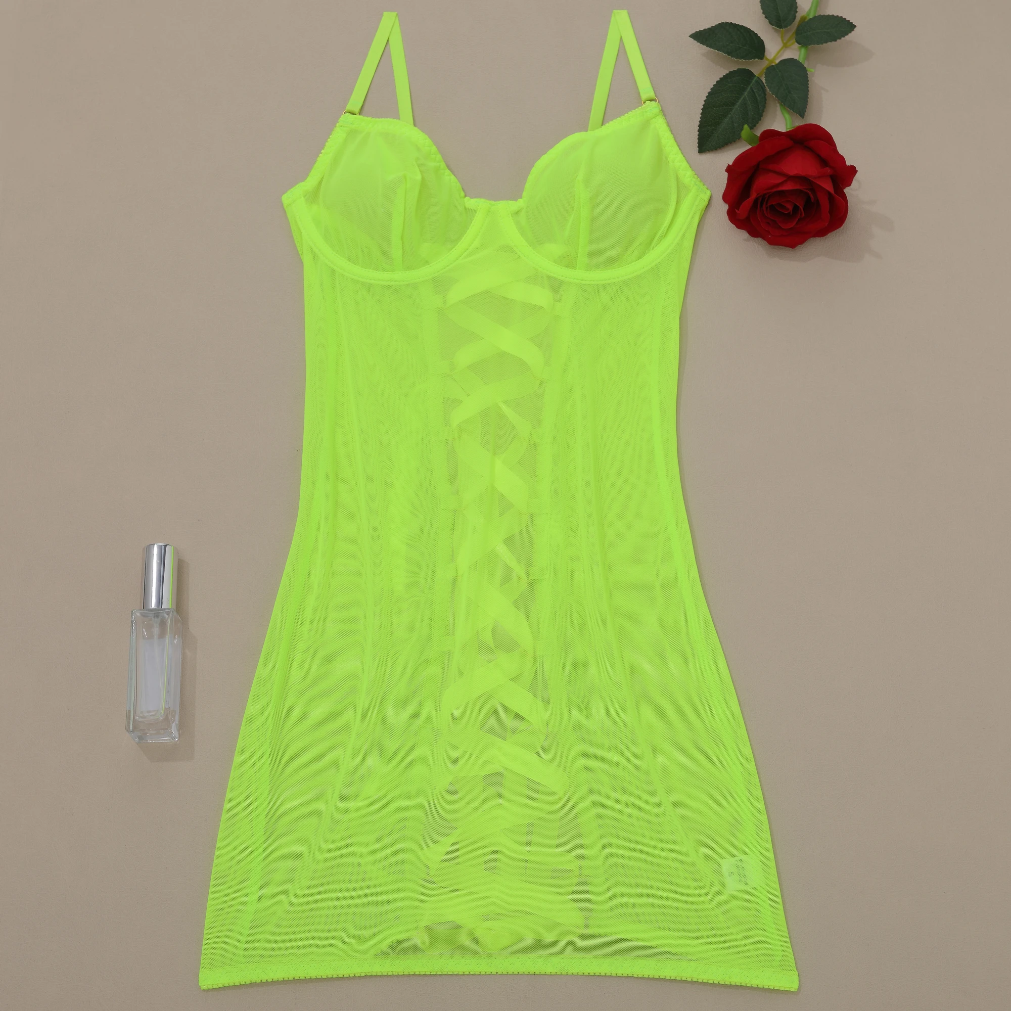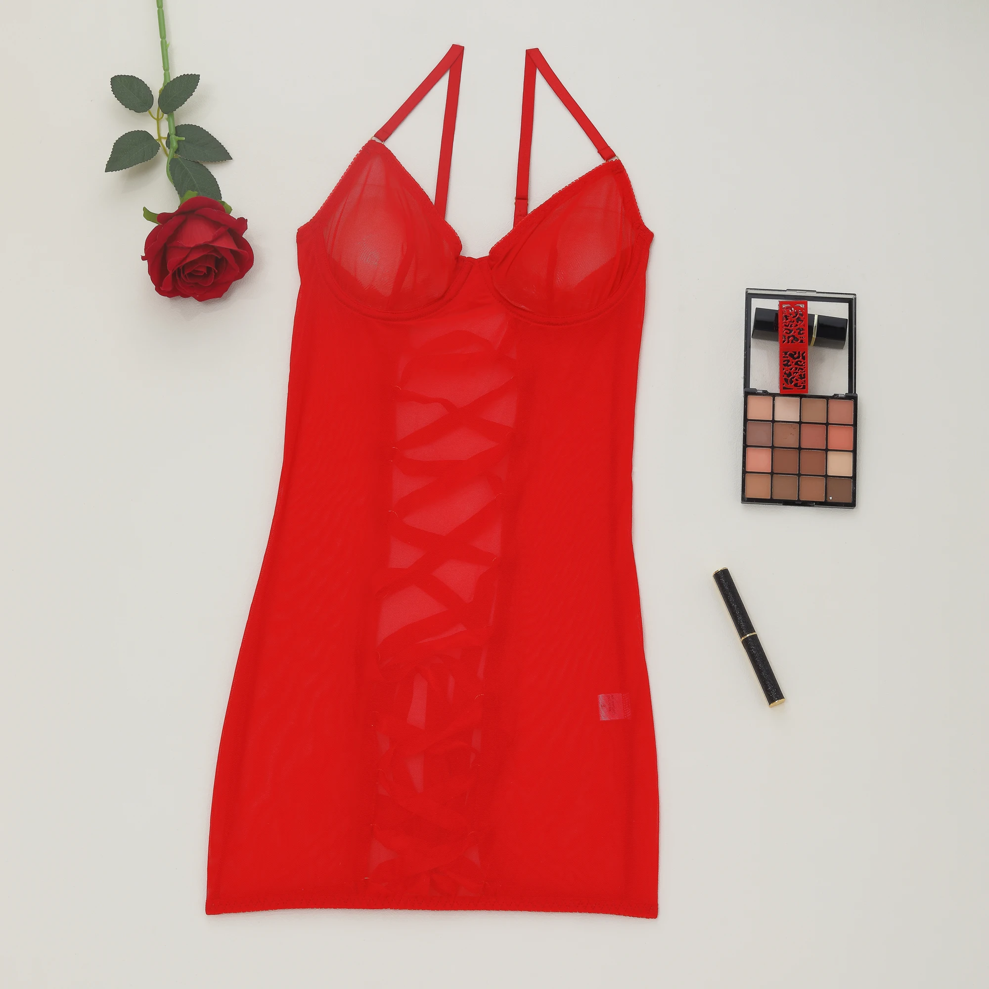 Cutout Tie Backless Dress Sheer Lace See Through Lingerie Transparent Night Dress Lace Up Babydoll