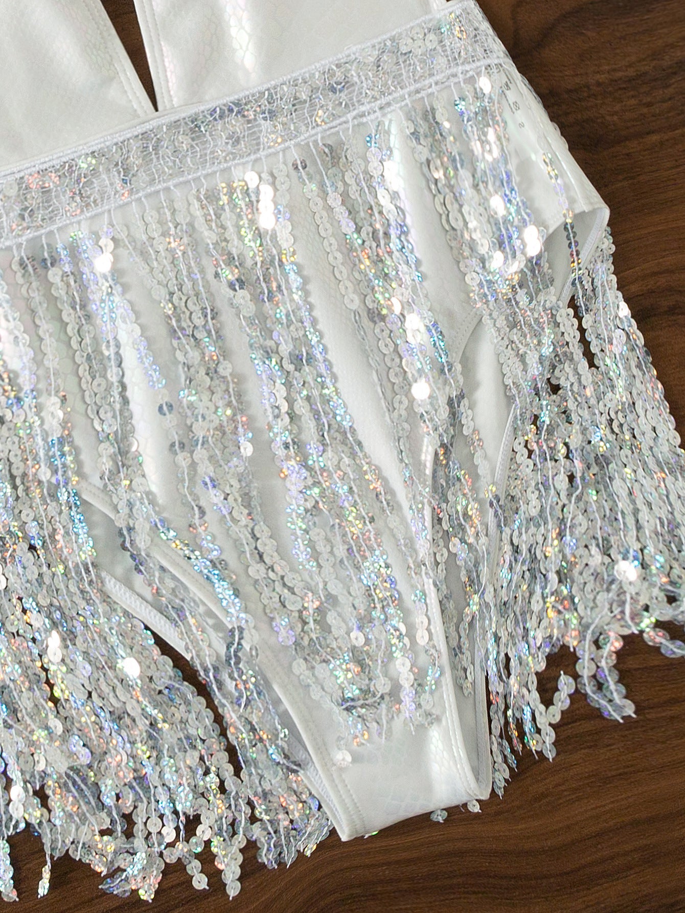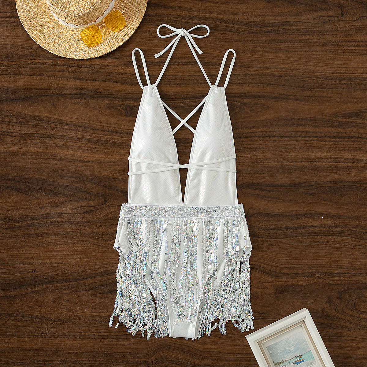 Sexy Deep V Tassel Dress One-piece Swimsuit