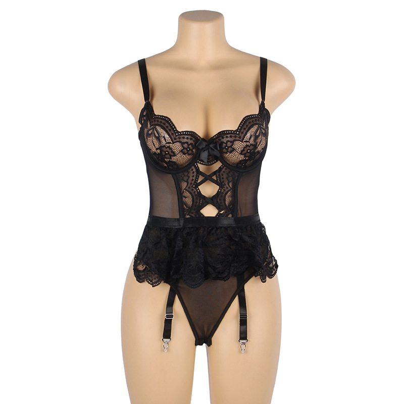Sexy Lingerie Lace Cutout Sling Jumpsuit Women Sexy Mesh See through Pajamas