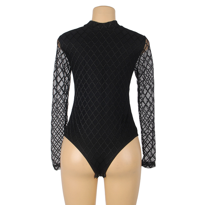 Sexy Lingerie Long Sleeve Rhombus Slim Fit Sexy Jumpsuit Black Slimming Thin Inner Wear Outer Wear Women