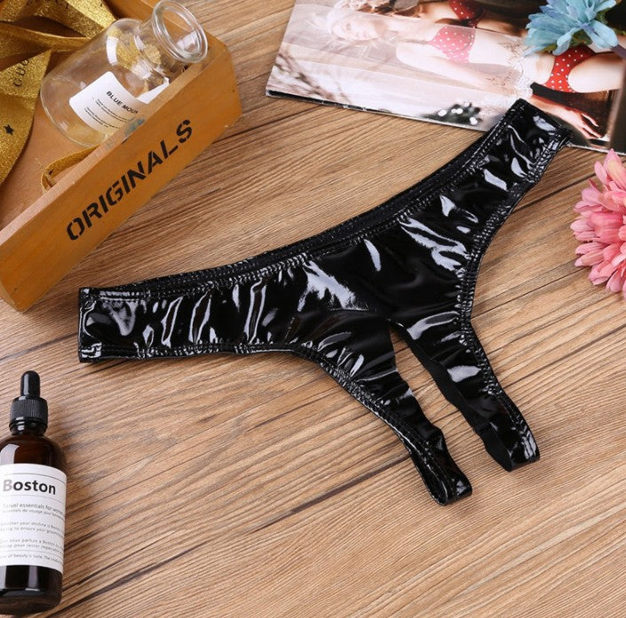 Sexy Lingerie Mini Panties Sexy Women's T-pants Patent Leather Thong
