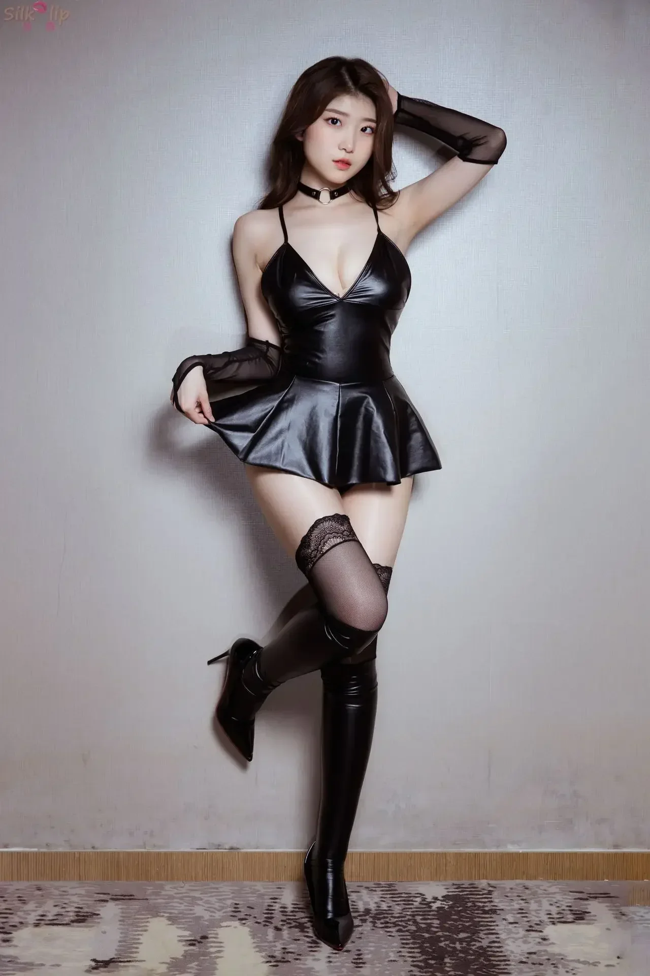 Sexy PU Sling Dress Set