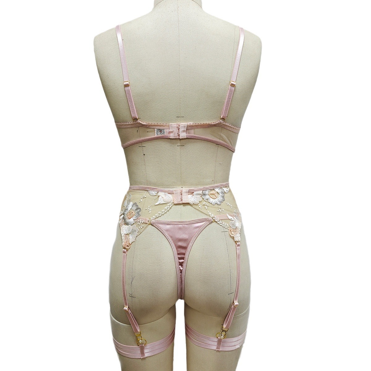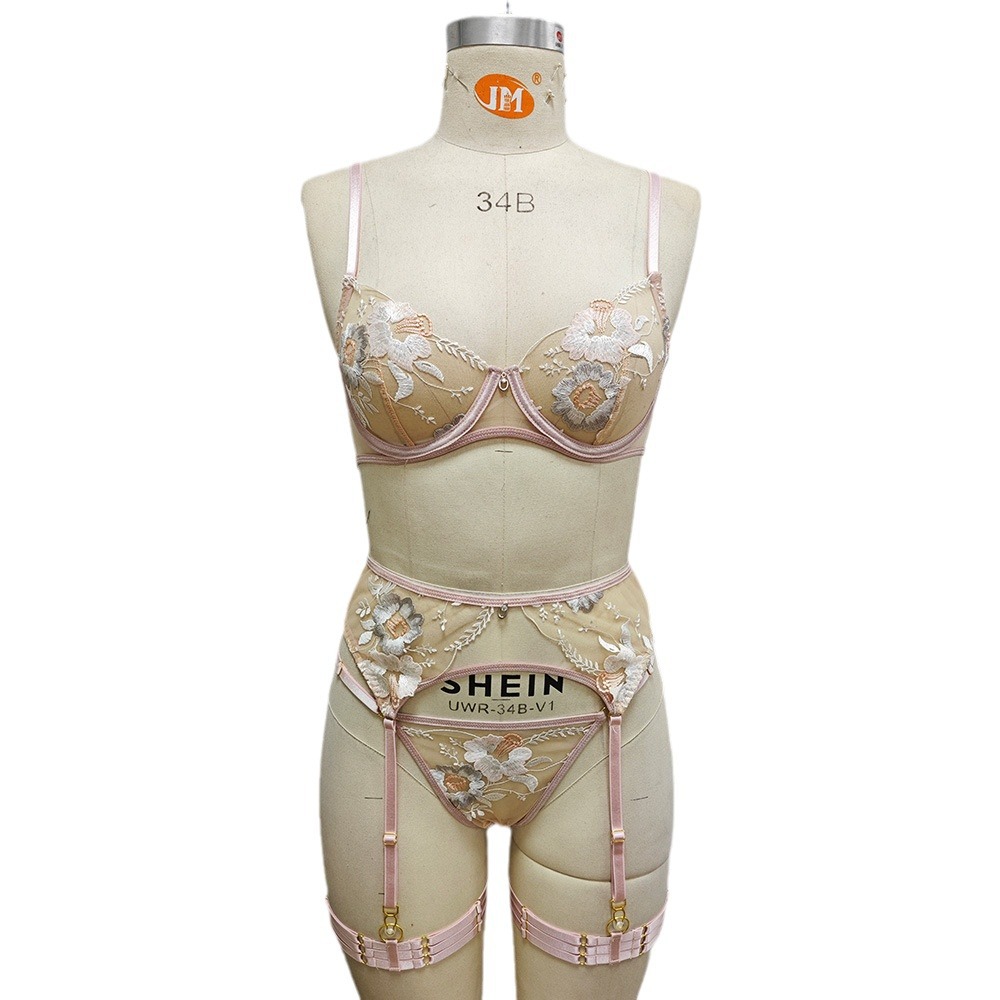 Sexy Lingerie Sexy Embroidery Floral Embellished Complex Heavy Craft Four Piece Set