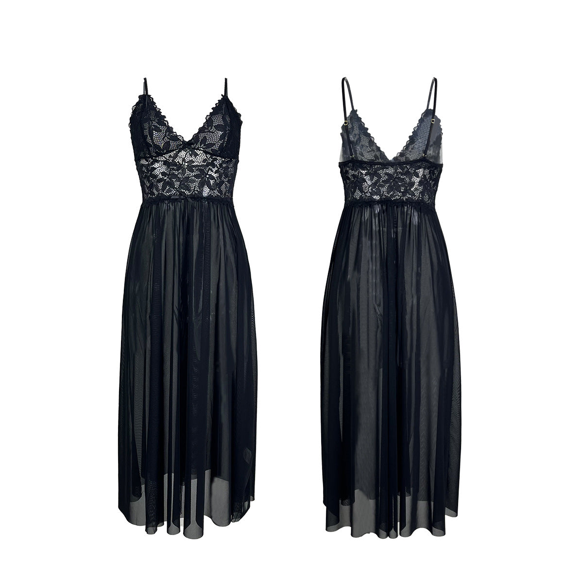 Sexy Lingerie Sexy Mesh Lace Pajamas Split Suspender Skirt Long Home Wear Nightdress
