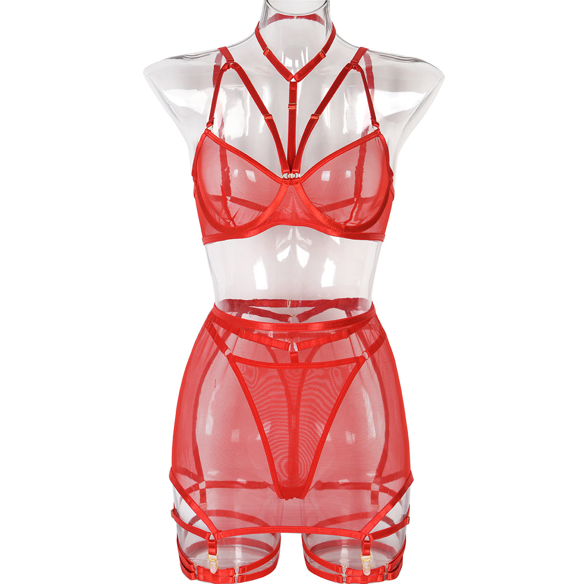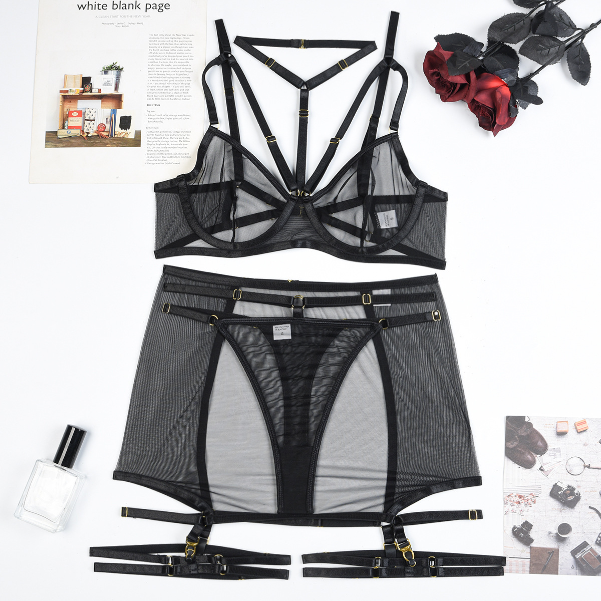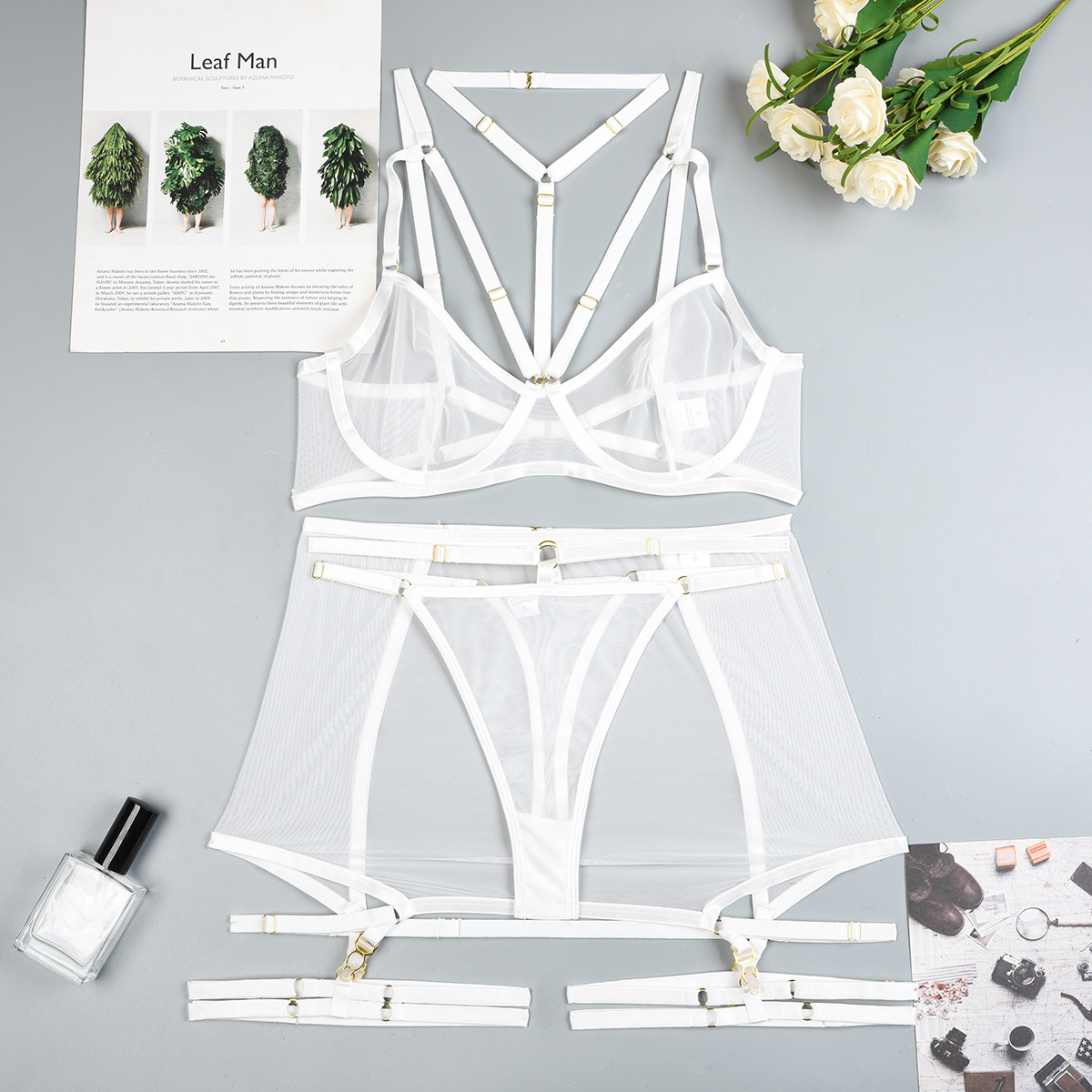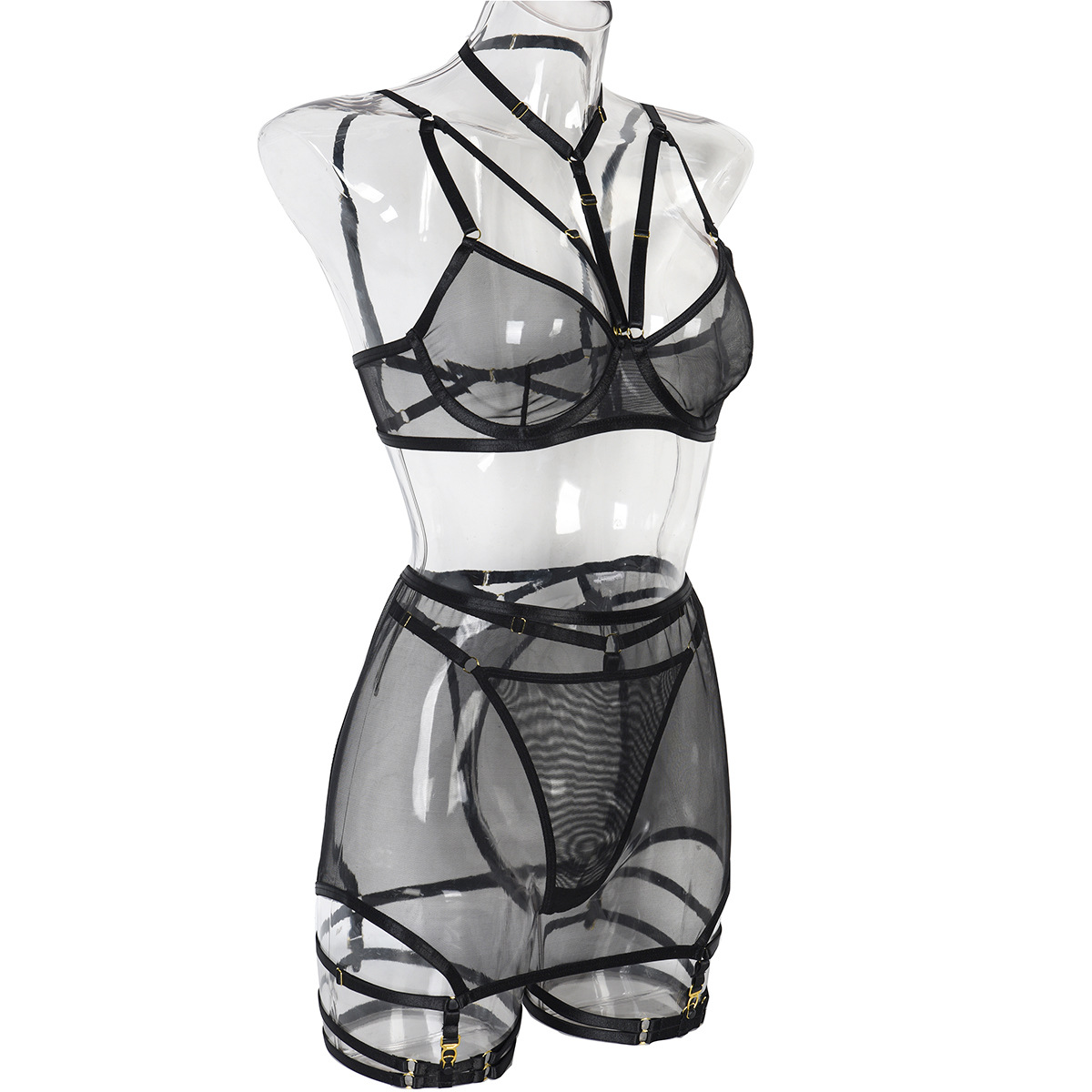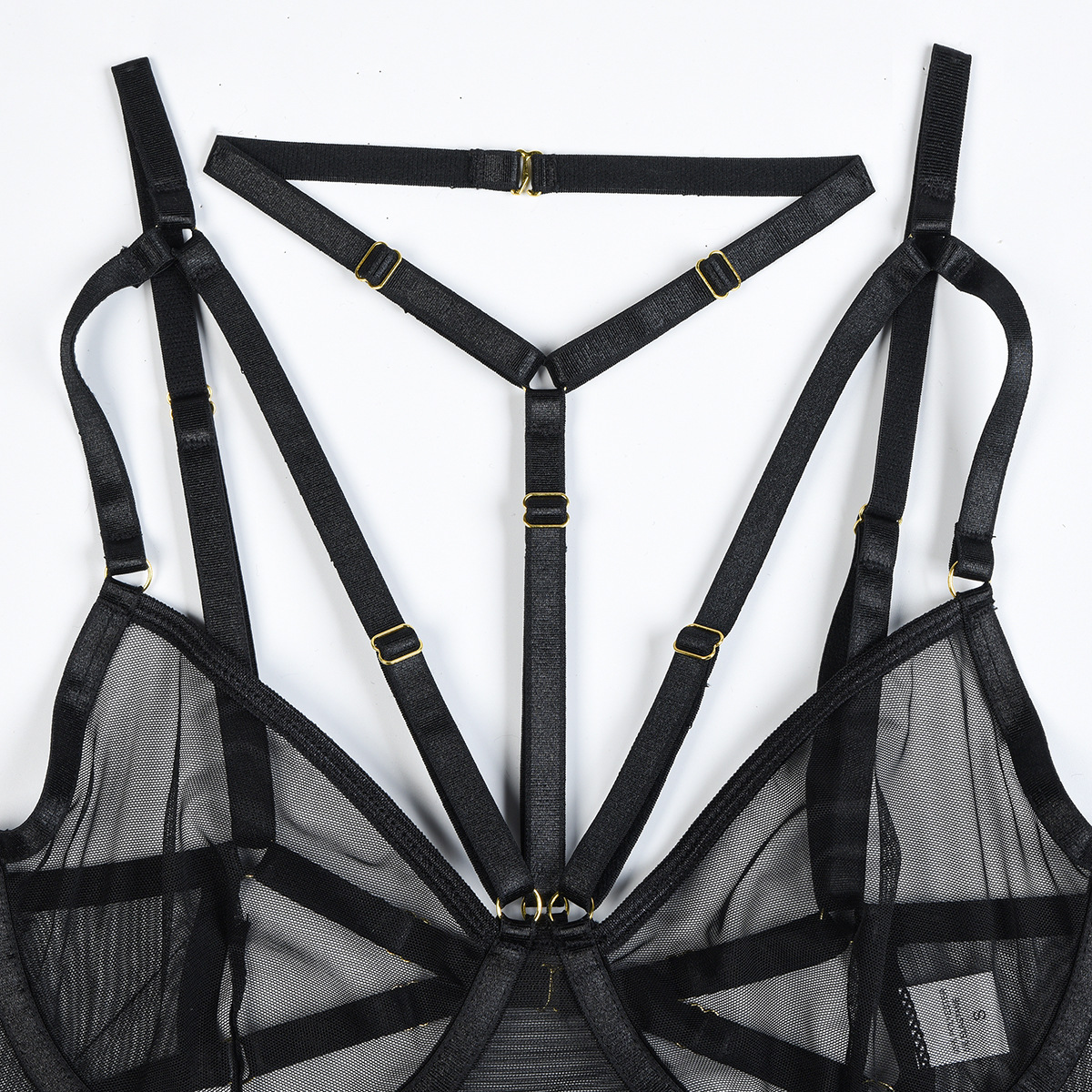 Sexy Lingerie Three Piece Set Mesh with Steel Bracket Stitching Sexy Clothes