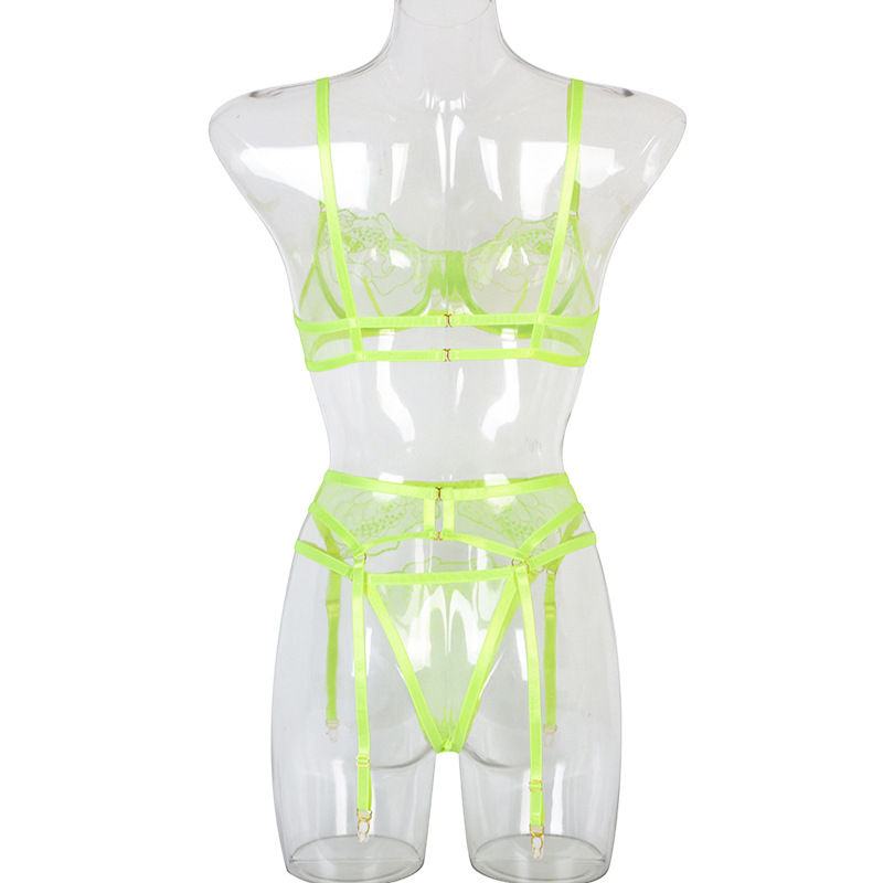 Sexy Lingerie Three-Piece Summer Three-Point See-Through Embroidery Mesh Stitching Suit