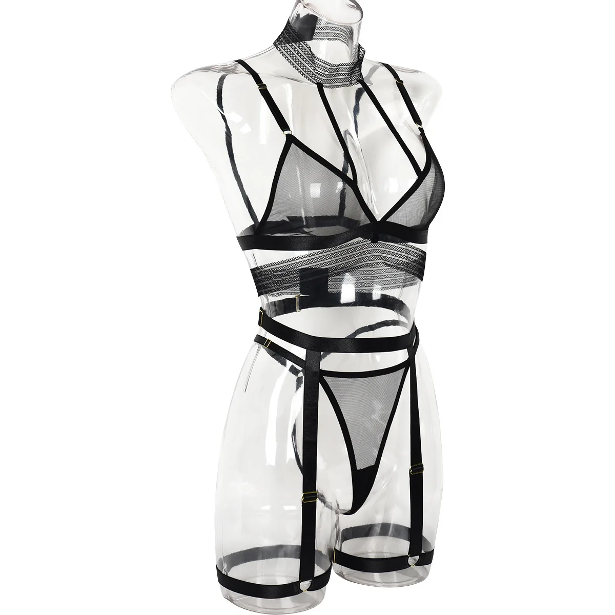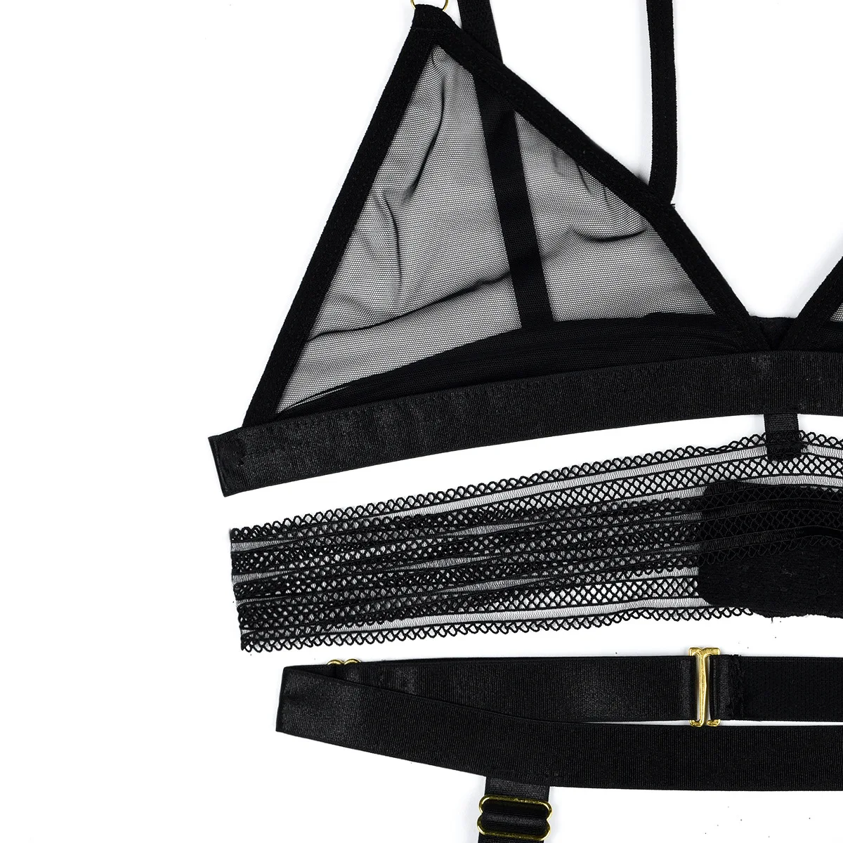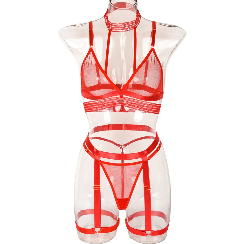 Sexy Lingerie Transparent Tulle Underwear Sensual Lace Bra Garter 3-Piece Romantic Mesh Underwear Intimate Set