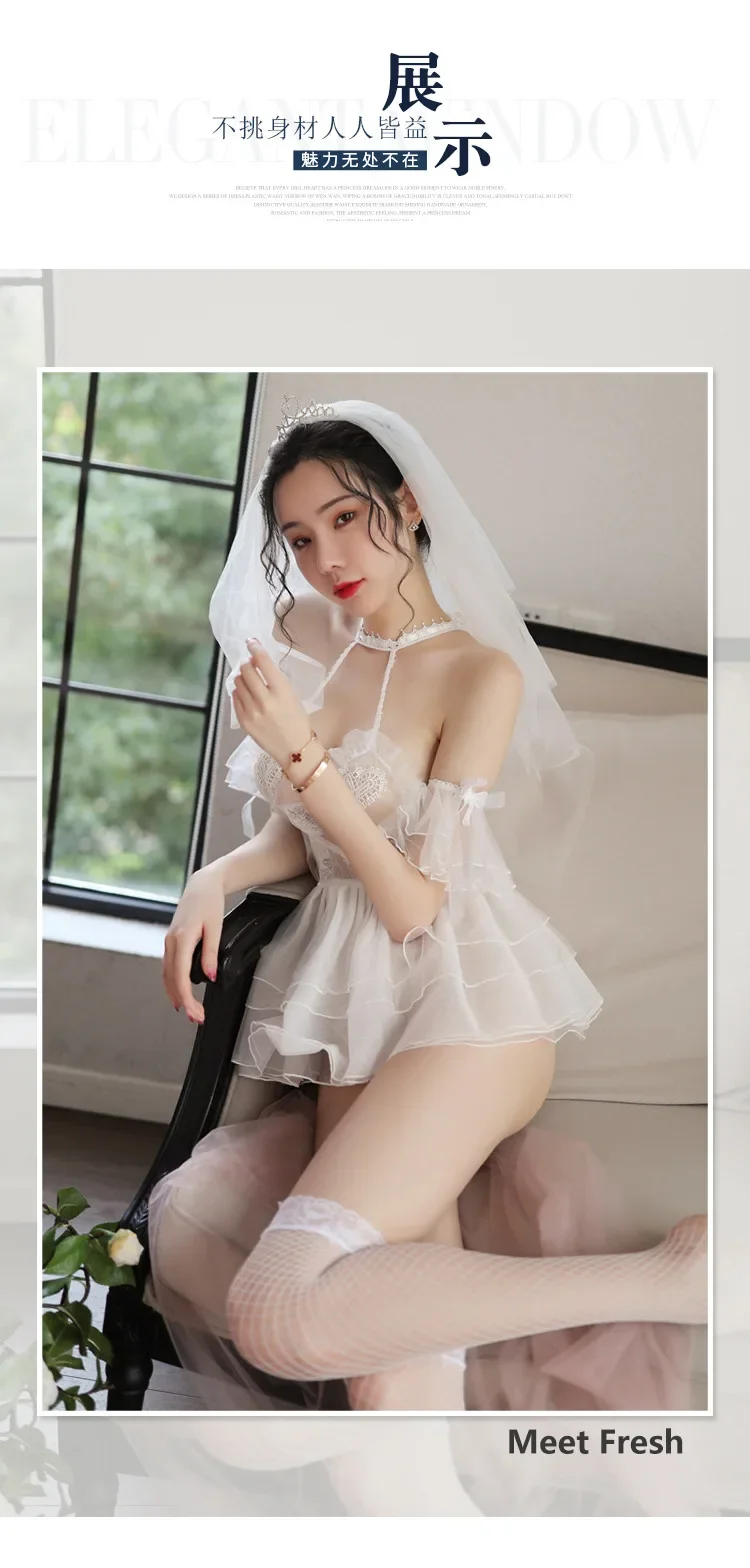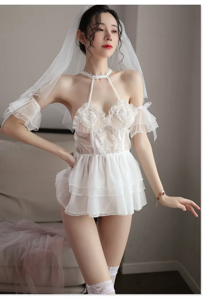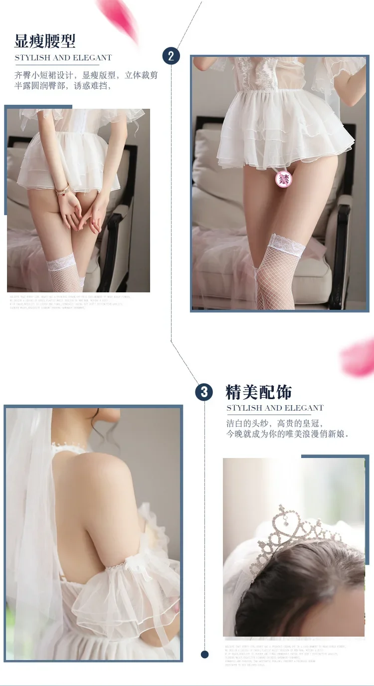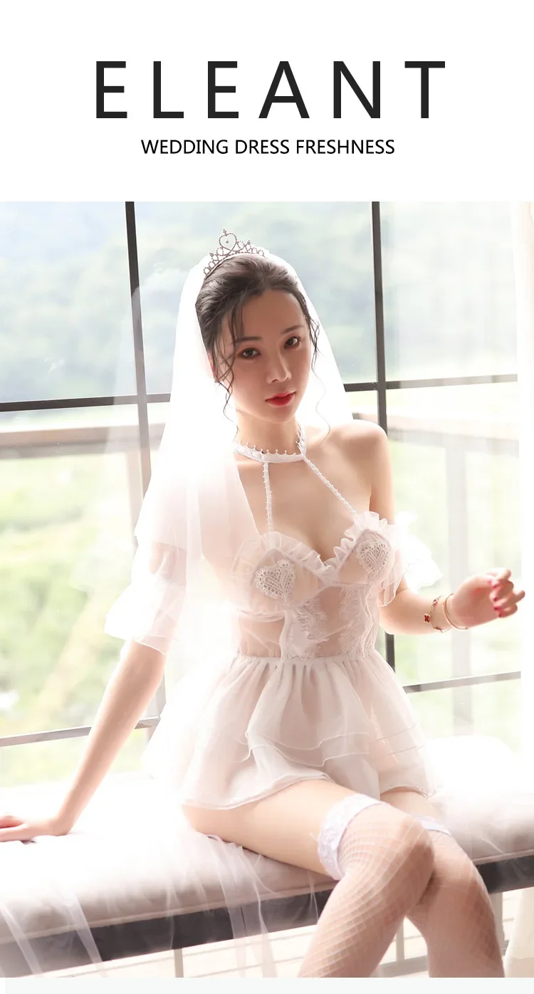 This sexy lingerie includes: Wedding dress+headscarf(excluding stockings)