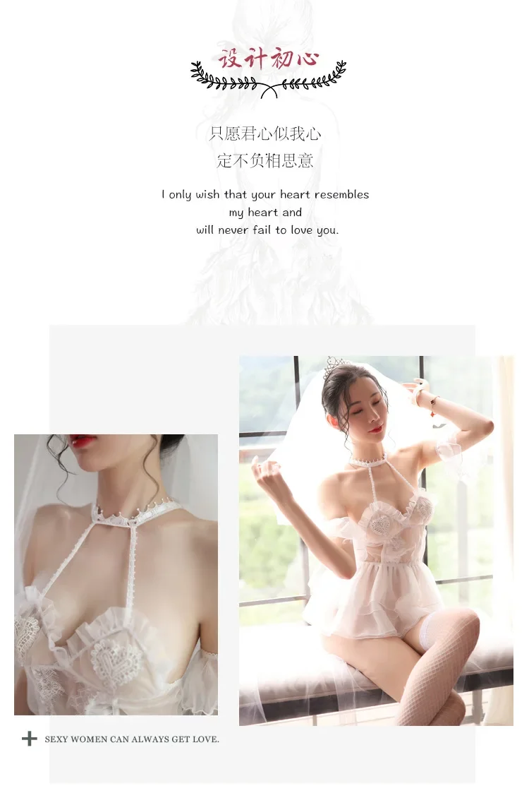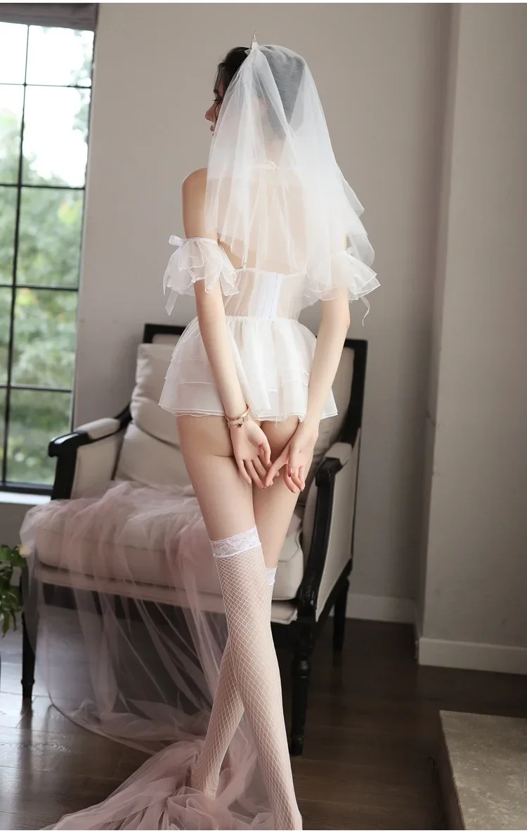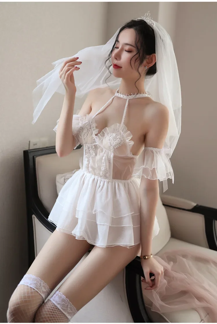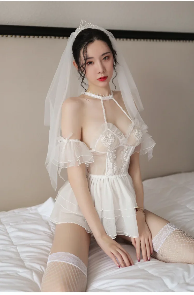 This sexy lingerie includes: Wedding dress+headscarf(excluding stockings)