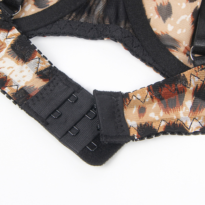 Sexy Lingerie Women Leopard Print Sexy Bra Set Steel Ring Gathered Wild Cat Uniform