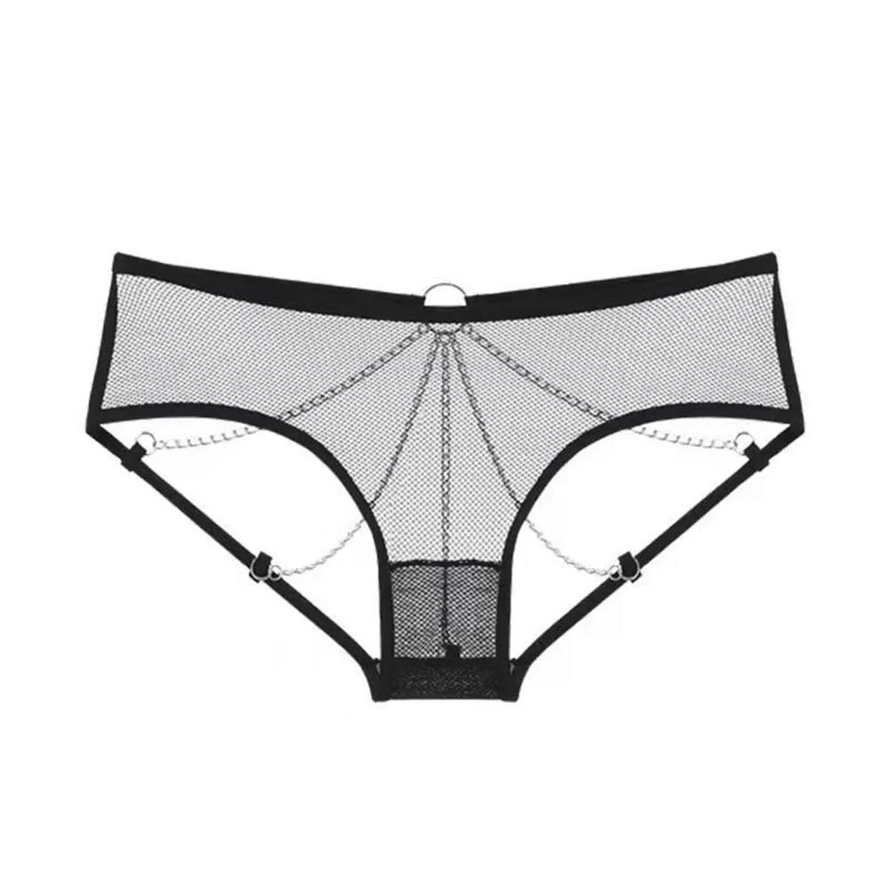 Erotic Lingerie Thongs Underwear Metal Chain Panties Sexy Briefs Mesh Open Crotch Perspective Women Hollow Out